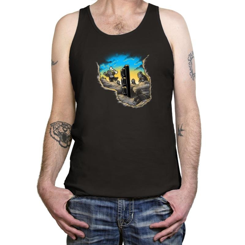 This design reimagines a landmark sci-fi scene using small plastic figures and a towering black brick instead of stone. The familiar moment of discovery is softened by rounded shapes, simple faces, and a sense of playful curiosity. It balances awe and humor, turning a serious cinematic idea into something quietly clever. If you know the original scene, the swap feels instantly satisfying.