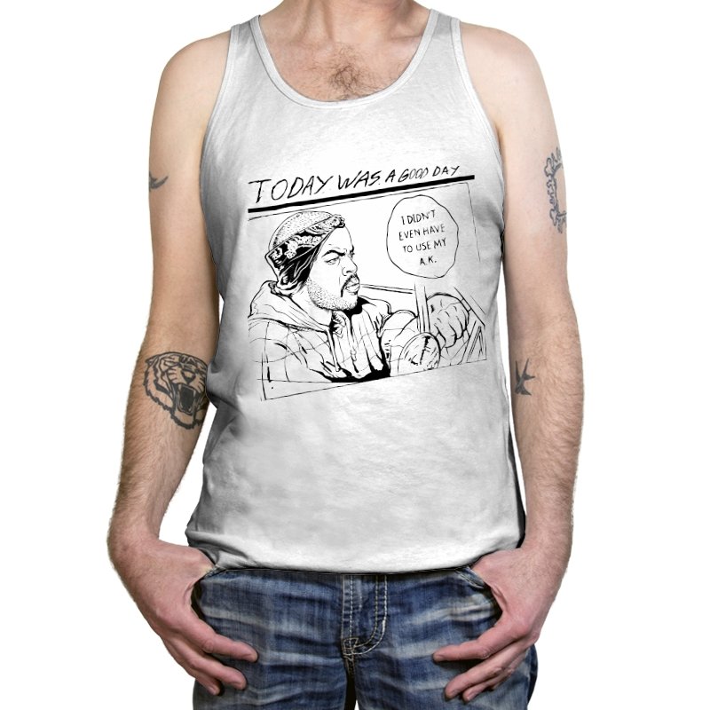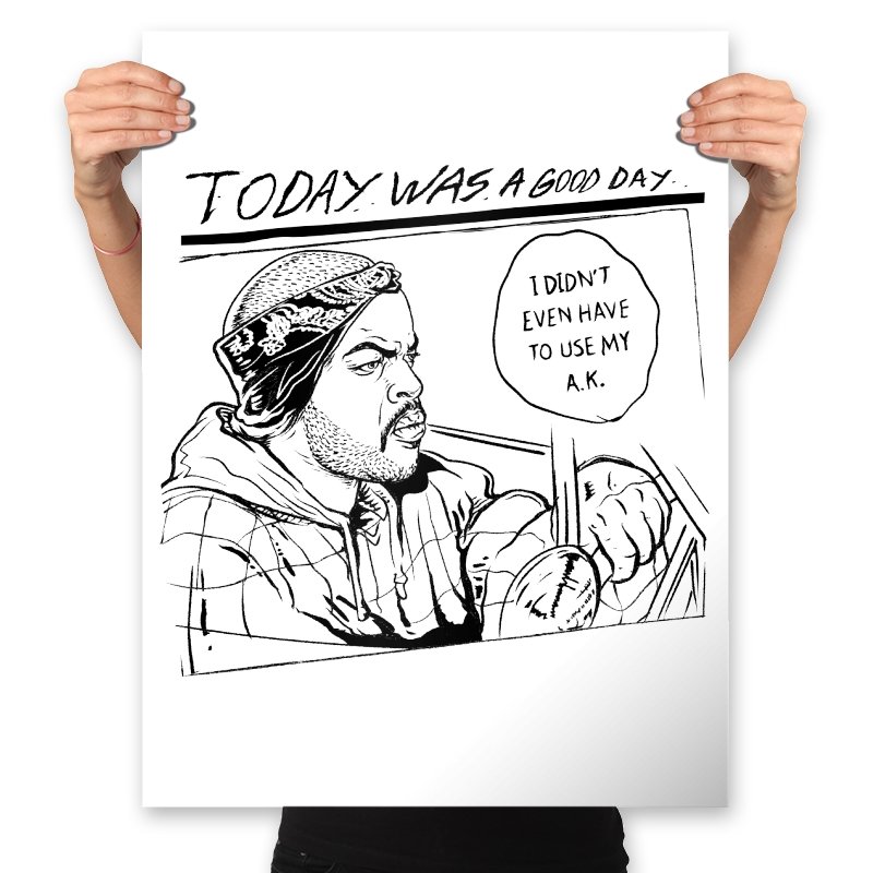 This design captures a single-panel moment that hip hop fans instantly recognize without needing it spelled out. Rendered in stark black-and-white comic linework, it freezes a calm drive through the city where nothing went wrong and everything stayed quiet. The handwritten caption and speech bubble frame a rare kind of peace, the kind that feels earned rather than lucky. It reads like a visual punchline built on restraint, not bravado.