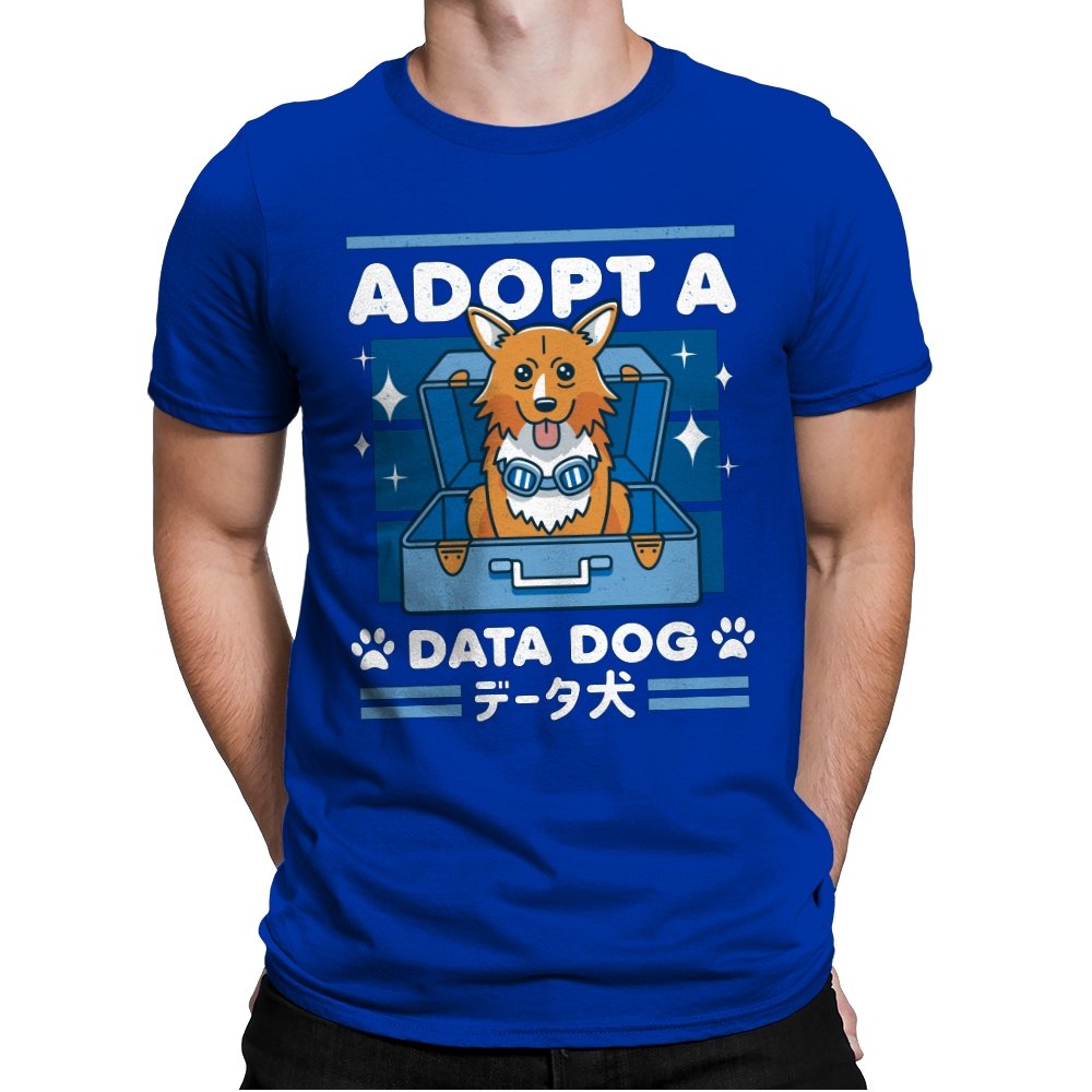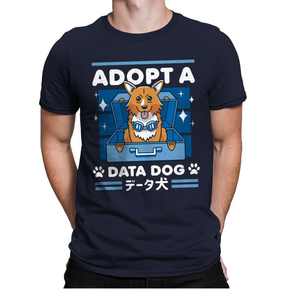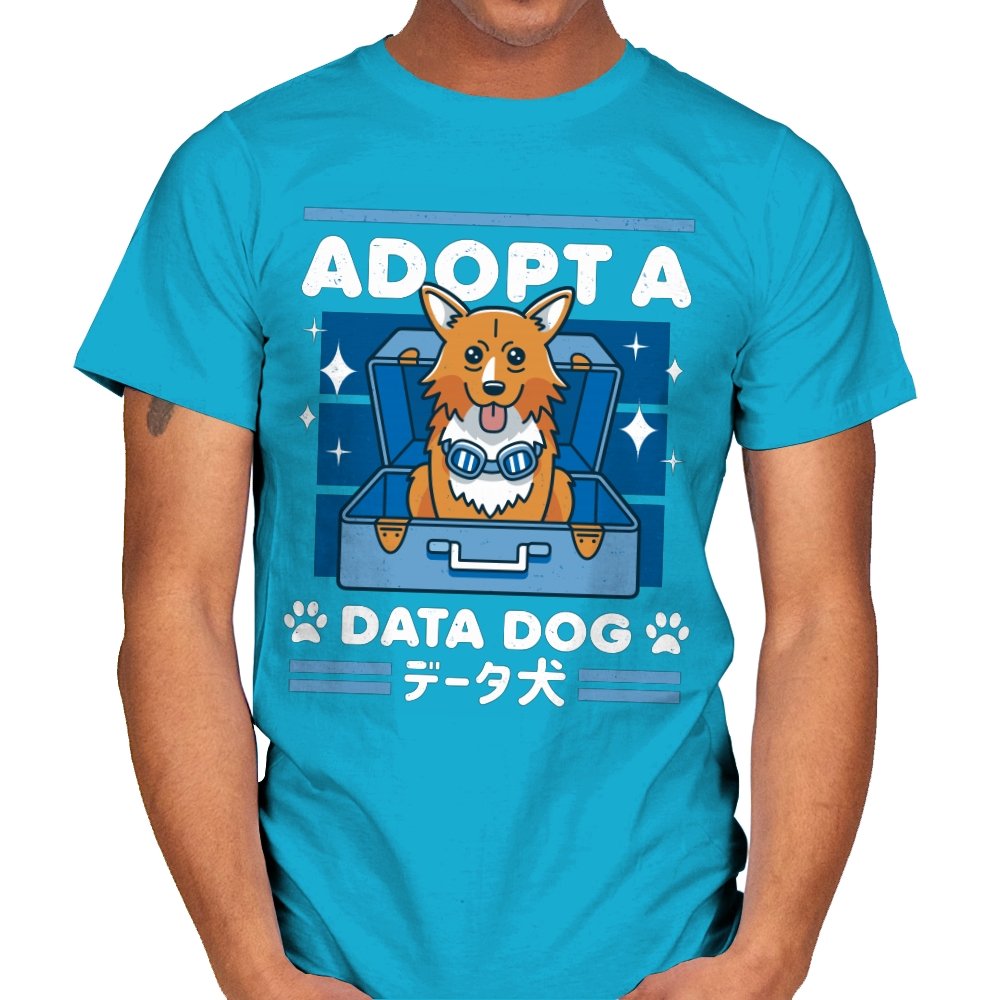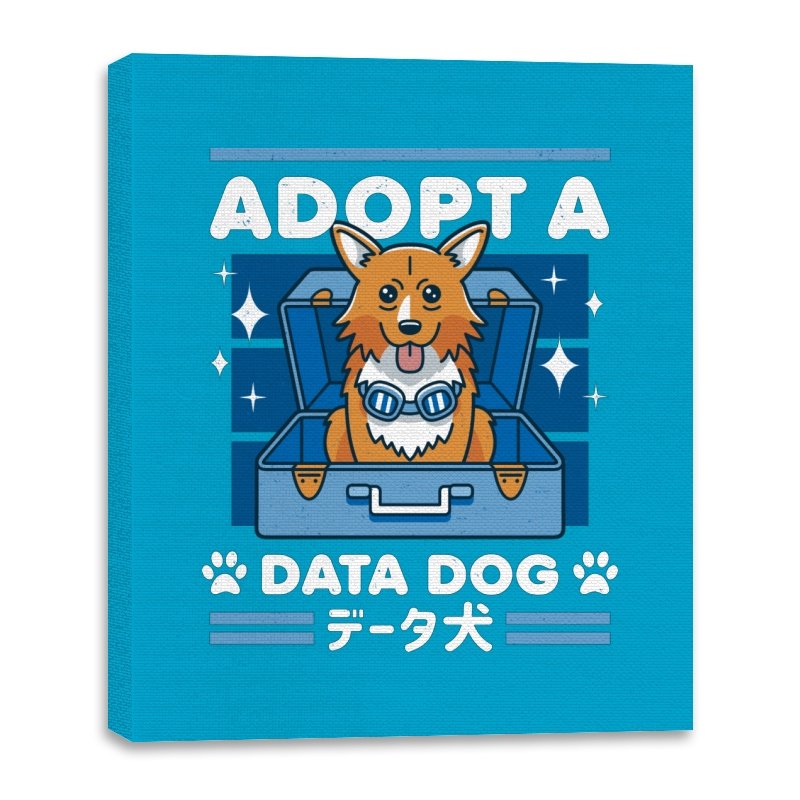 Adopt a Data Dog turns a legendary corgi sidekick into the sweetest tech adjacent pet adoption ad. The design shows a bright eyed dog sitting in an open suitcase surrounded by sparkles, as if freshly unboxed from a hacker’s shopping spree. Blue goggles hang at his neck, hinting at his scientific origins without spelling them out. Bold lettering and paw icons frame the scene, while Japanese text reinforces the anime lineage for anyone who grew up on late night space jazz.