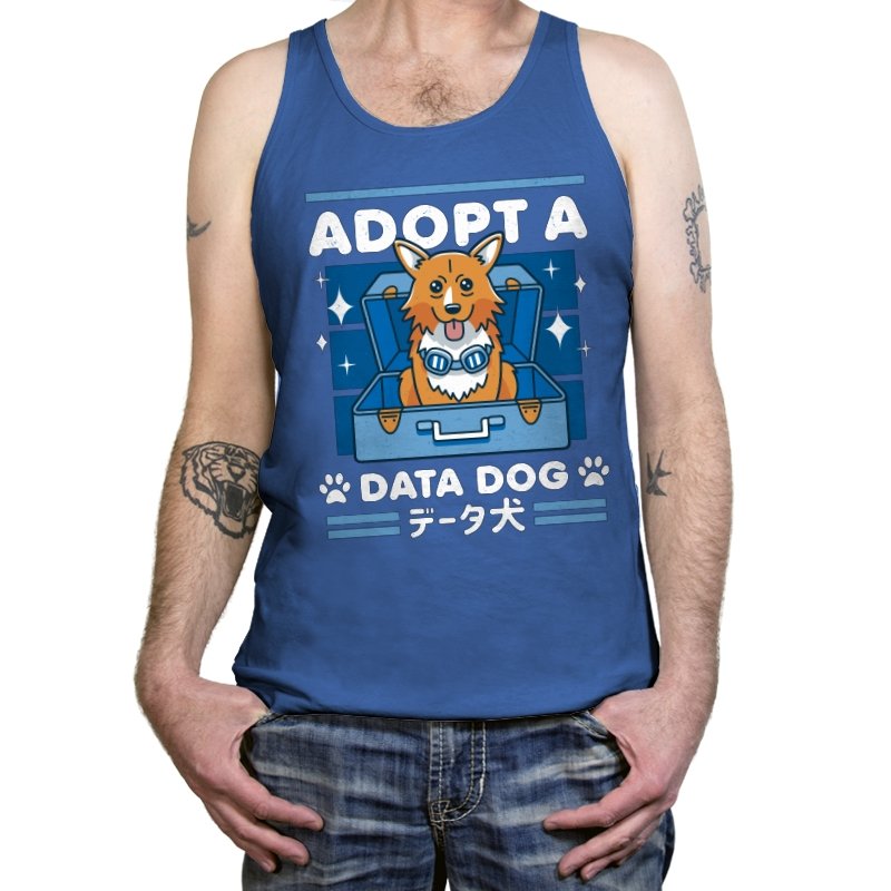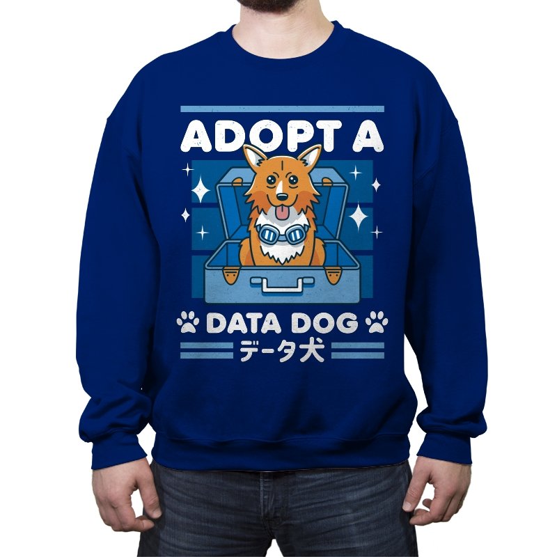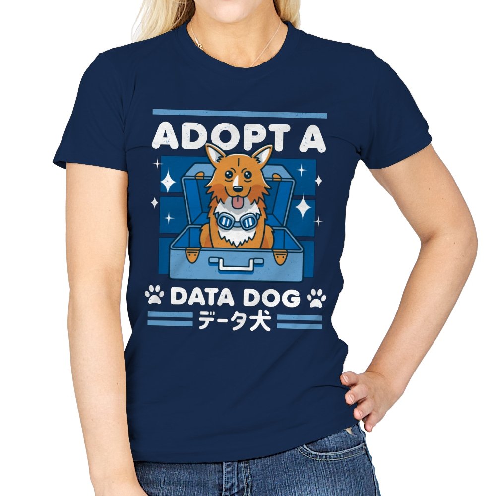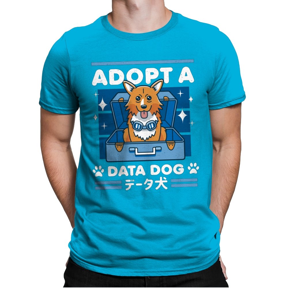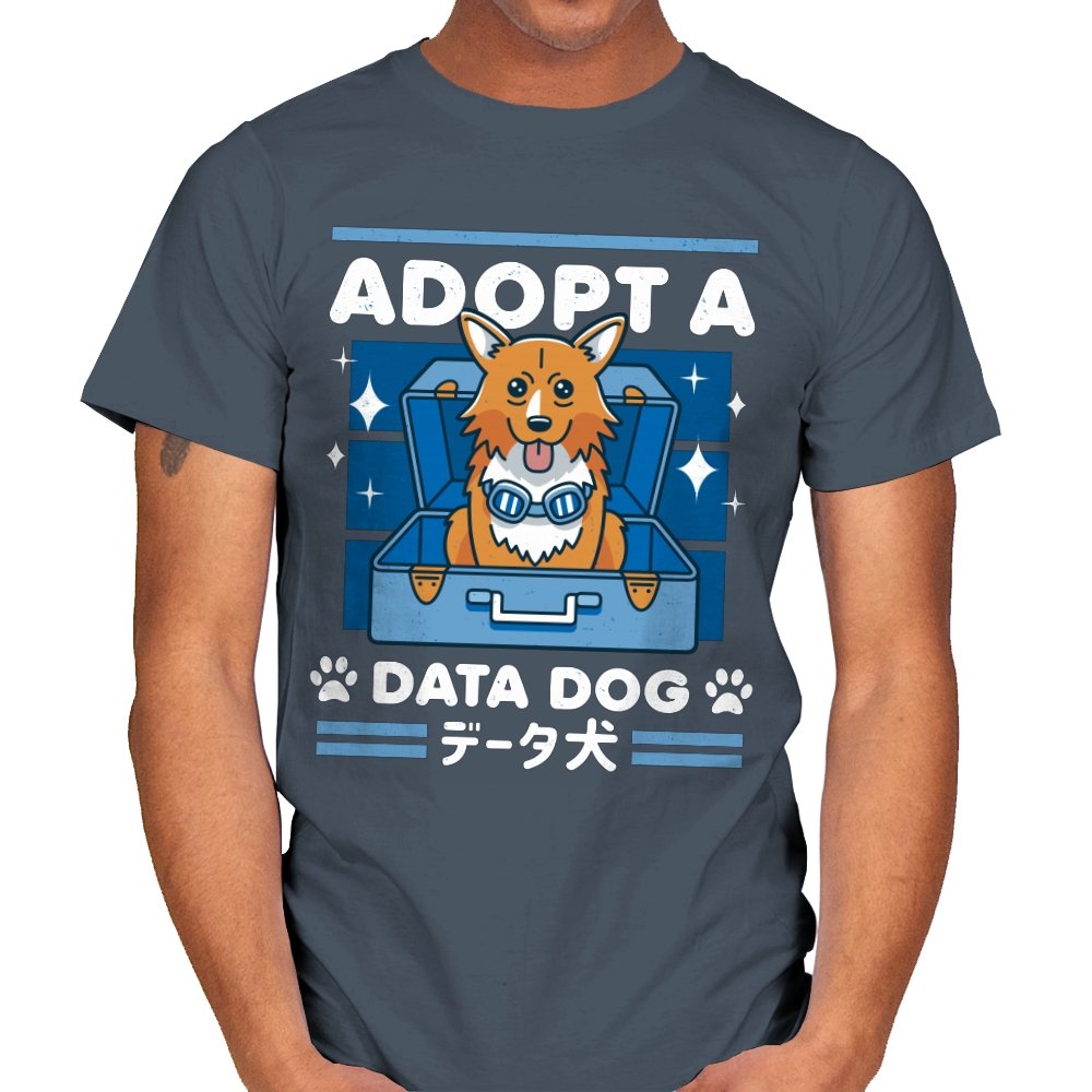 Adopt a Data Dog turns a legendary corgi sidekick into the sweetest tech adjacent pet adoption ad. The design shows a bright eyed dog sitting in an open suitcase surrounded by sparkles, as if freshly unboxed from a hacker’s shopping spree. Blue goggles hang at his neck, hinting at his scientific origins without spelling them out. Bold lettering and paw icons frame the scene, while Japanese text reinforces the anime lineage for anyone who grew up on late night space jazz.