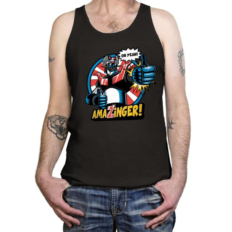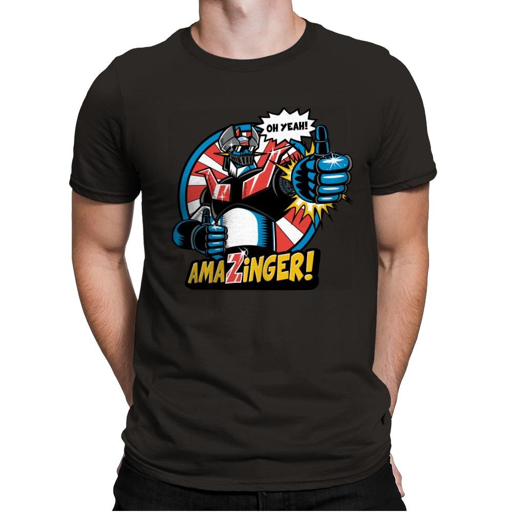 This design leans hard into vintage robot bravado, with bold lines, clenched fists, and a grin that feels half heroic, half ridiculous. The pose is pure confidence, framed like a classic comic splash panel that never bothered with subtlety. Bright colors and exaggerated proportions do the heavy lifting, while the speech bubble seals the joke. If you grew up on oversized machines and loud attitudes, you already understand it.