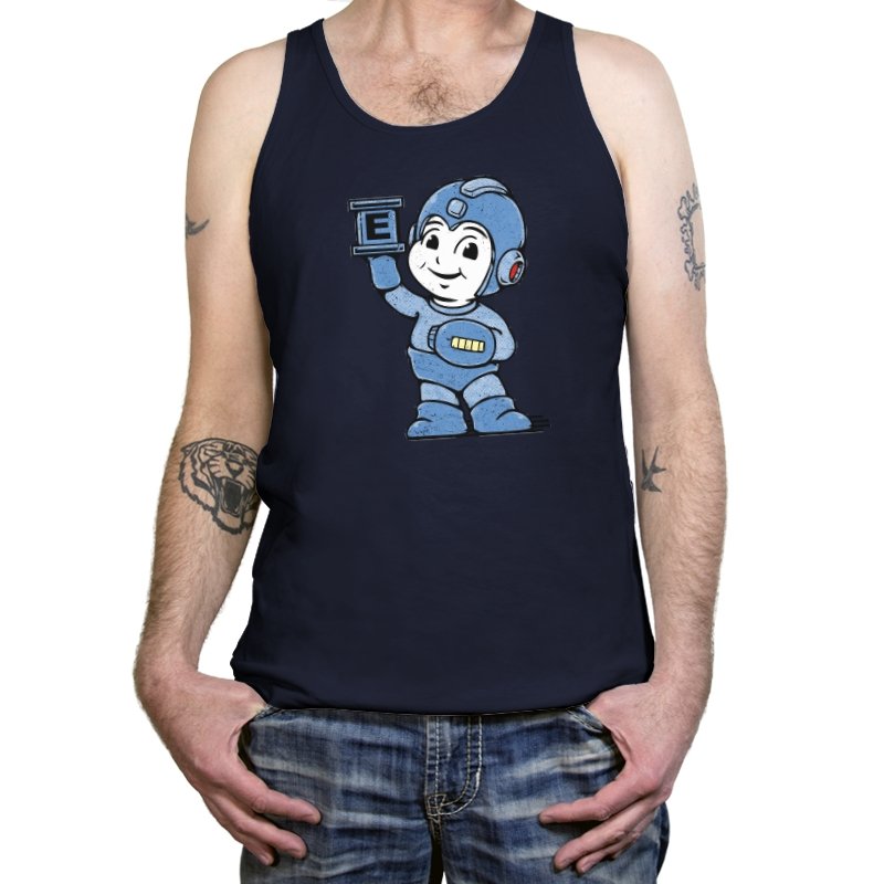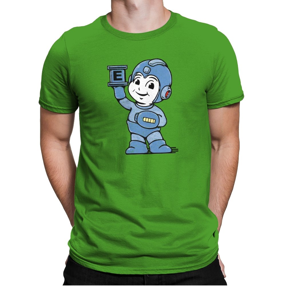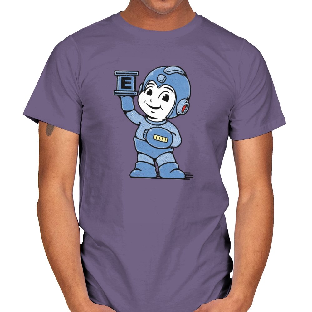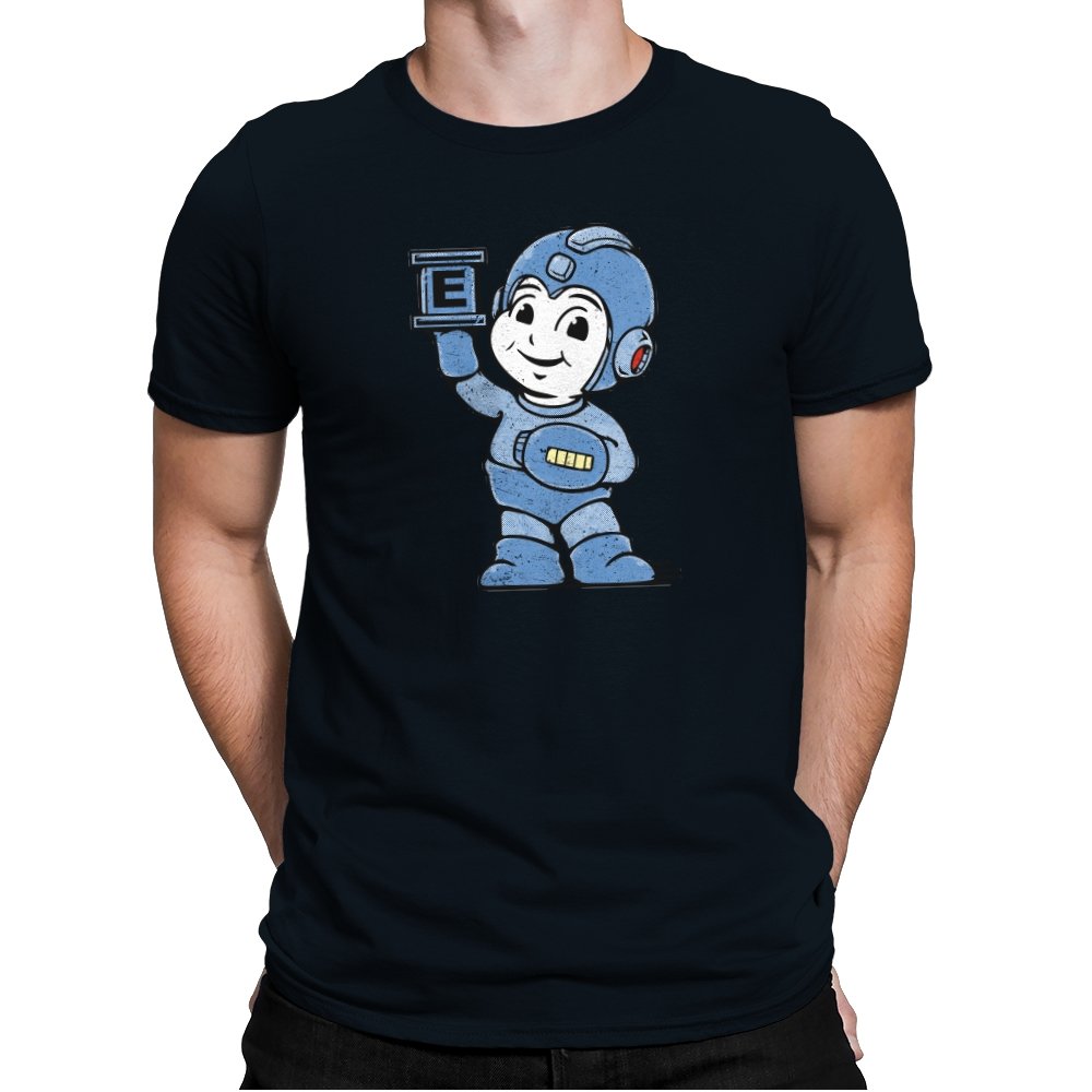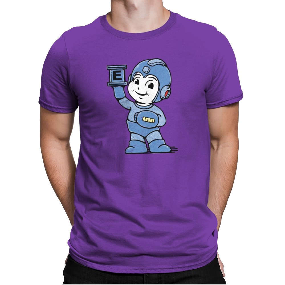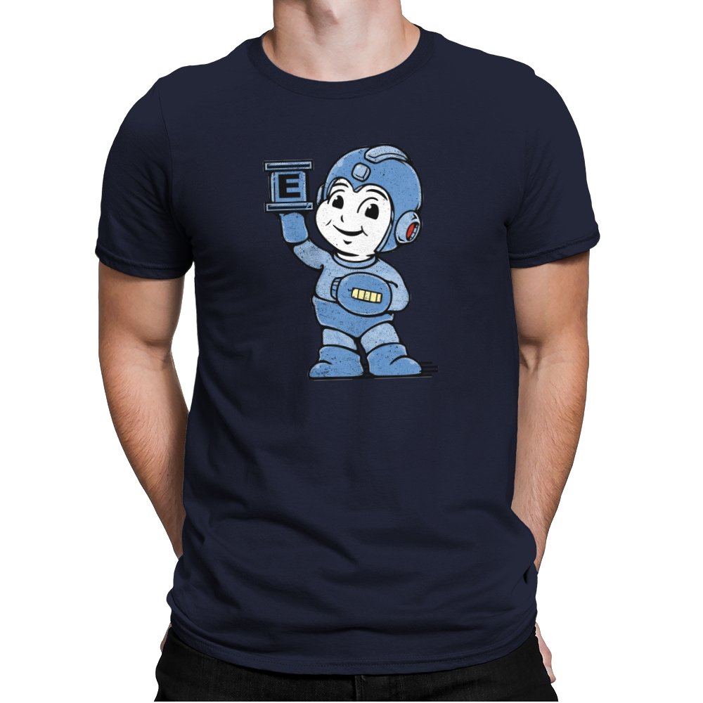 This design taps into early console charm, when heroes were built from simple shapes and pure optimism. A rounded, friendly robot stands proudly, helmet oversized, arm raised like a freeze-frame from an instruction manual. The grainy texture and muted blue palette feel pulled from a worn CRT screen. Fans who grew up memorizing patterns and timing jumps will recognize the spirit immediately.