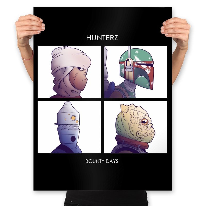 This design arranges four familiar profiles into a clean grid, each one rendered in a softer, almost reflective style. Instead of action shots, the focus stays on identity, showing these hunters in quiet moments between contracts. Subtle color choices and smooth shading give each panel its own personality while keeping the set cohesive. Fans who get the reference understand this as a tribute to the days spent tracking, waiting, and surviving rather than celebrating the fight itself.