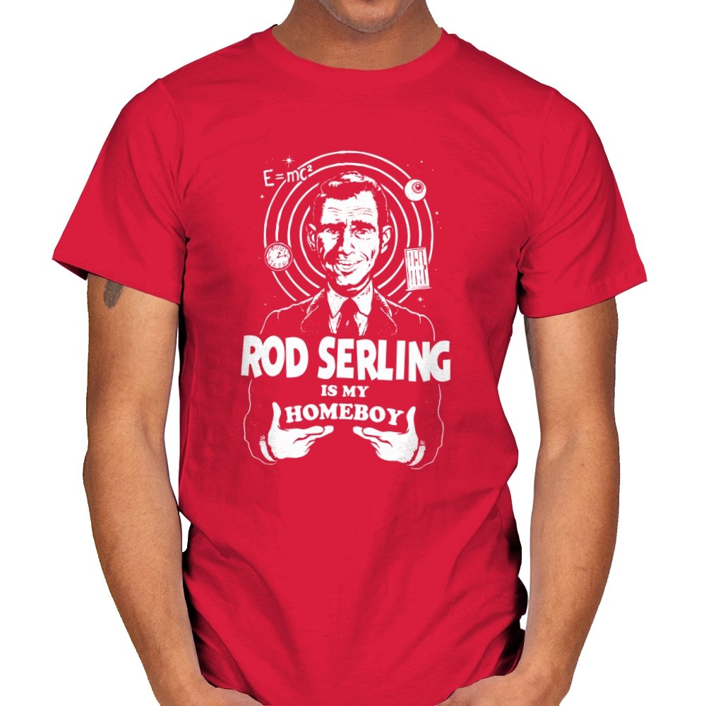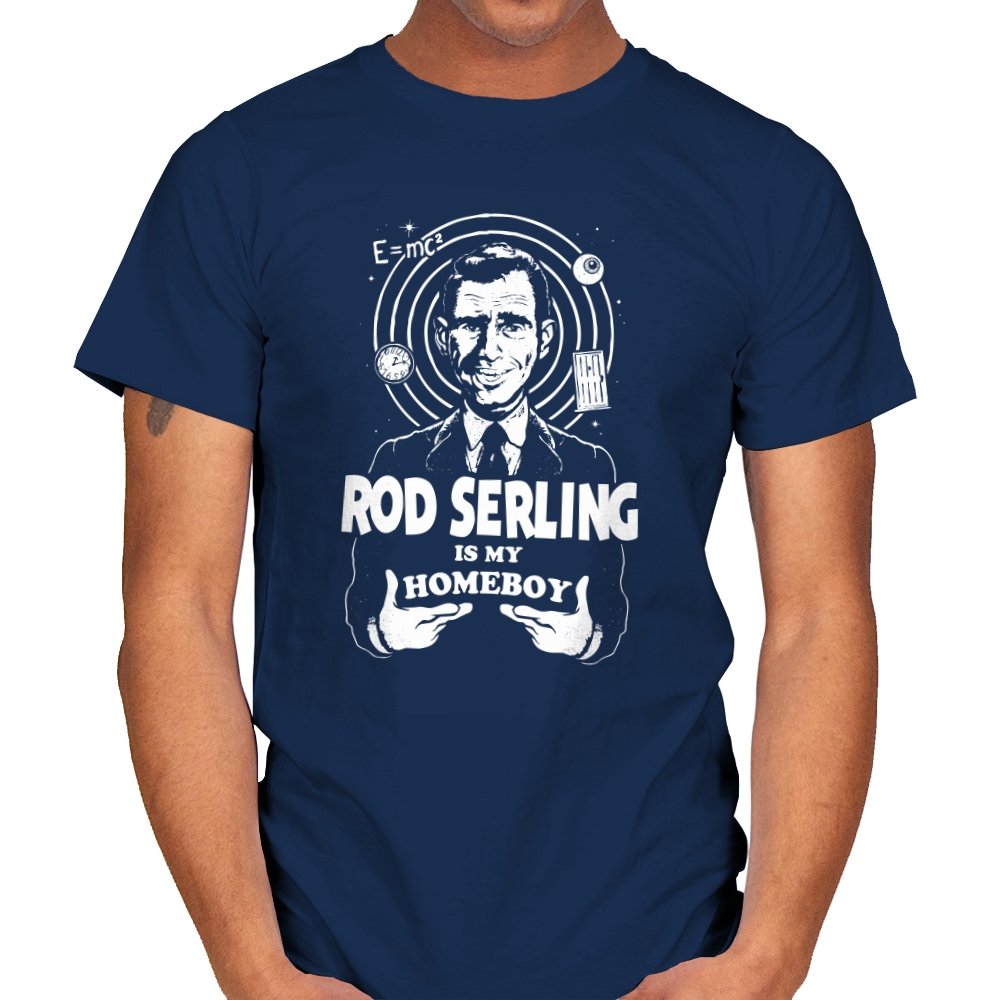 This design pulls a familiar black and white television figure into a swirl of science symbols, cosmic diagrams, and late night speculation. The portrait feels authoritative but playful, framed by orbiting ideas that hint at time loops, strange dimensions, and moral twists. The message lands like an inside joke for people who grew up on thoughtful sci-fi that trusted the audience to keep up. If you know the voice and the cadence, the reference is immediate.