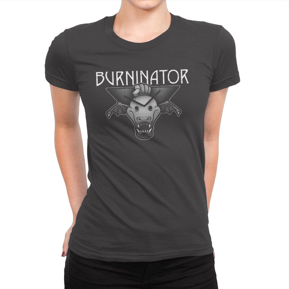 The design merges a certain guitar god logo with a fire breathing cartoon dragon. The wings stand in for iconic horns, while a clenched fist rises above the head as if about to shred. The art is monochrome and lightly distressed, which gives the dragon a lived in, tour shirt vibe. Anyone who grew up quoting silly internet cartoons will recognize the reference instantly.