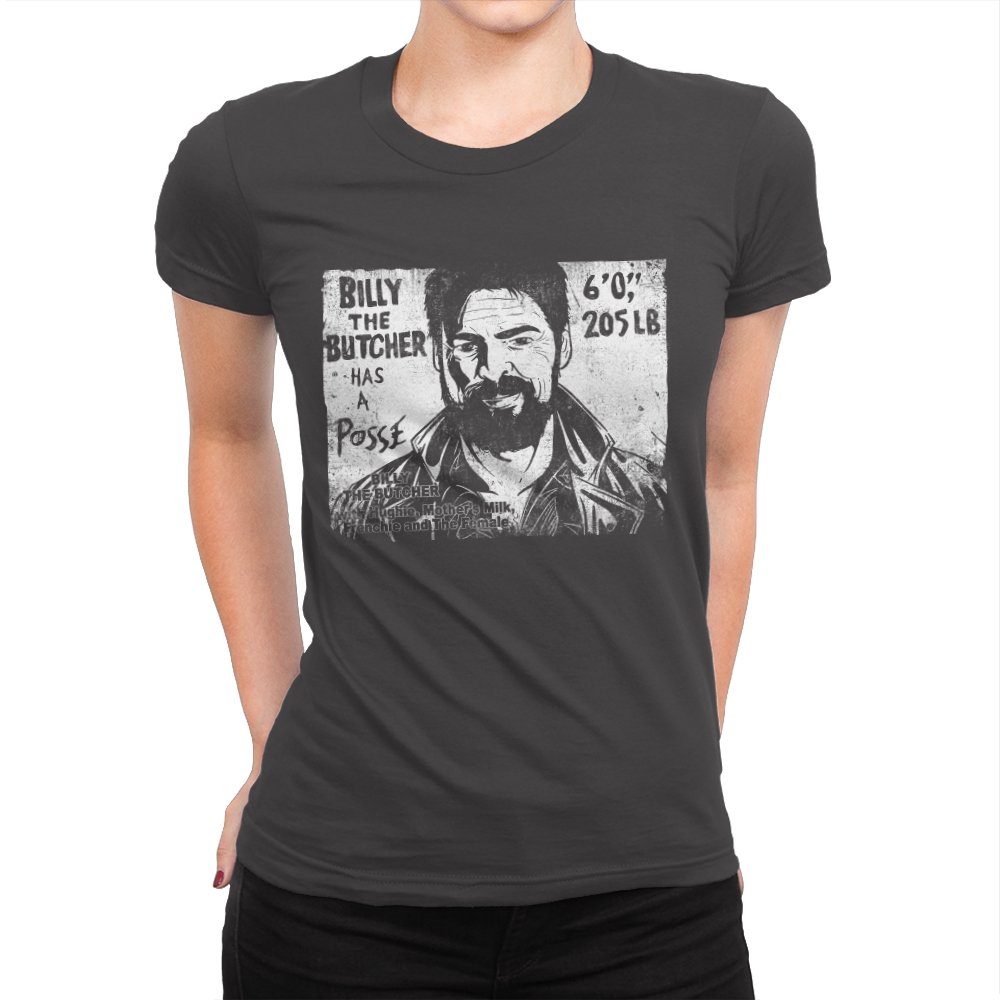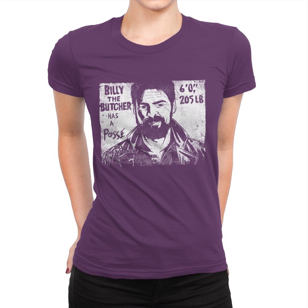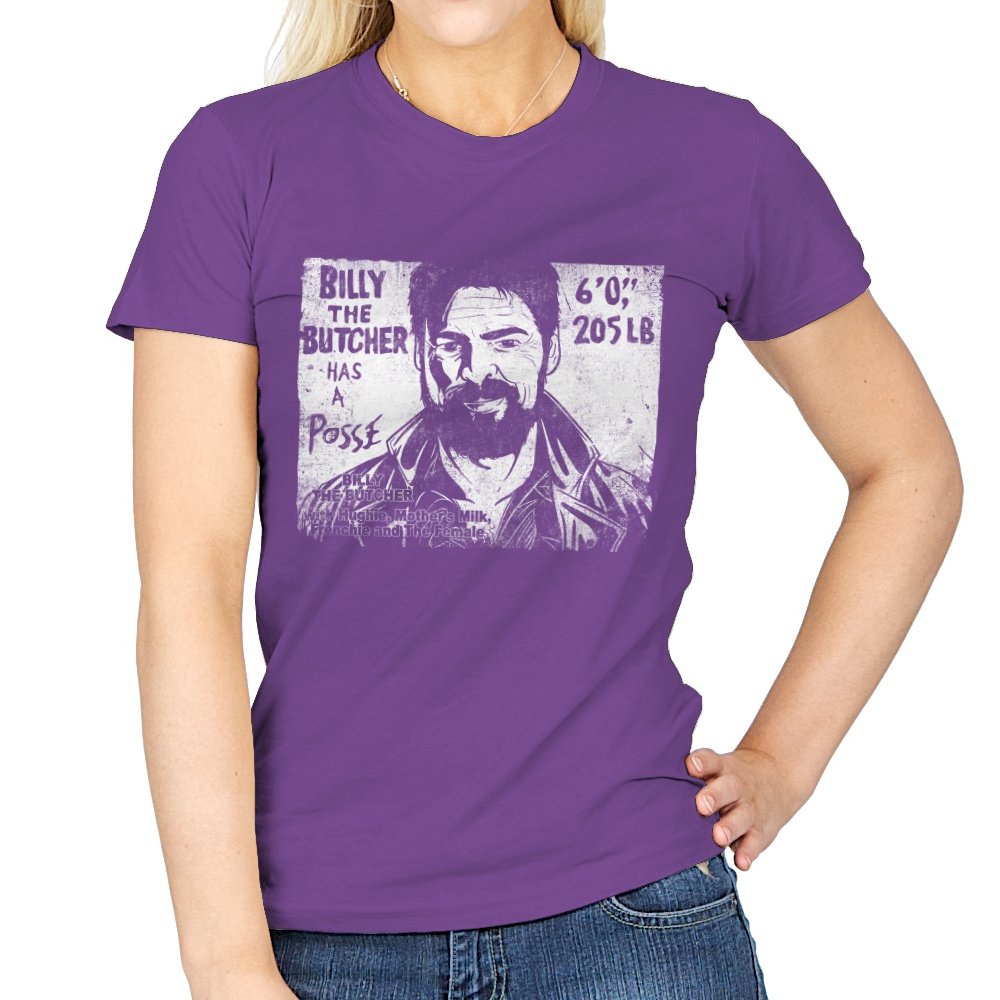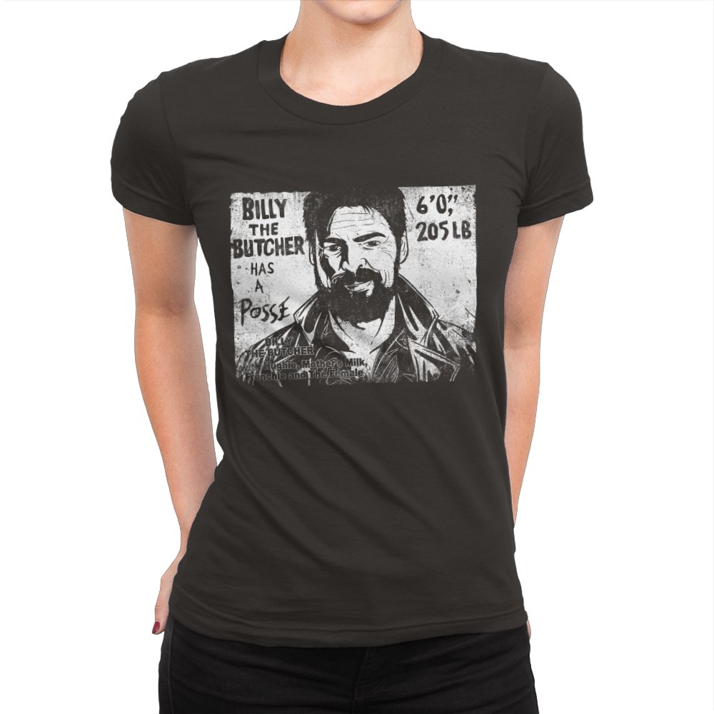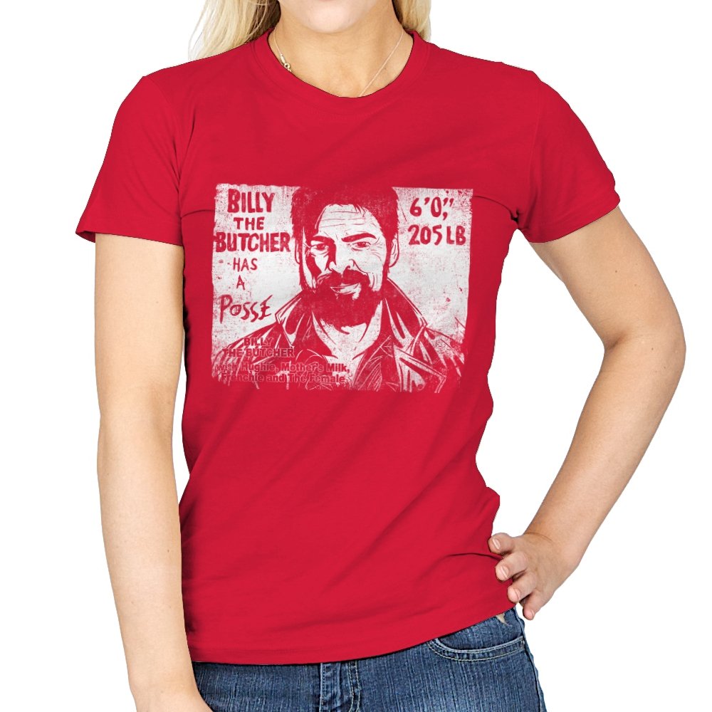 This design turns a grinning trench coat tough guy into the subject of a battered street sticker. The rough black and white texture lists his height, weight, and the fact that he has a posse of misfits that viewers of a certain ultraviolent satire already know well. The lettering feels hand cut, the shadows feel photocopied, and the whole image looks like it belongs on a brick wall behind a dive bar. Fans get the joke instantly because it blends punk attitude with comic book mayhem.