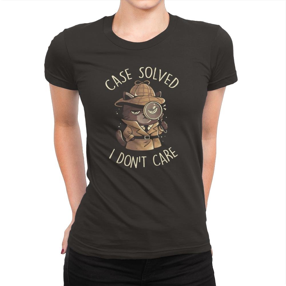 This design turns the classic mystery solver into a tiny, unimpressed antihero, complete with trench coat, hat, and an oversized magnifying glass that says more than it sees. The wide eyes and flat expression undercut the serious detective pose, making the punchline land instantly. The hand lettered text frames the character like a closed case file, blunt and final. It reads as satire for anyone who knows how dramatic investigations usually end.
