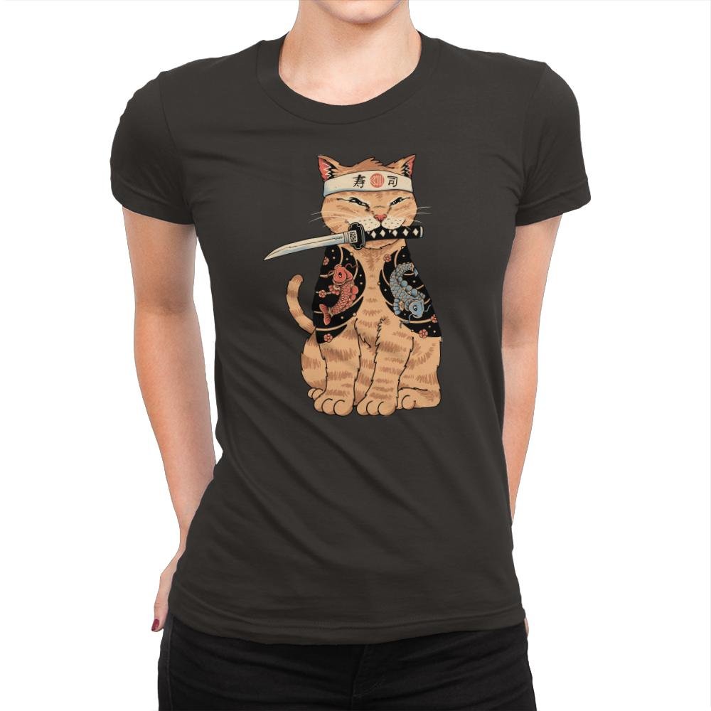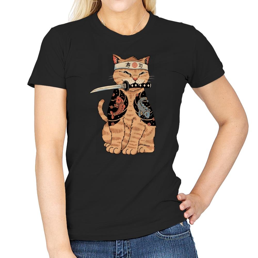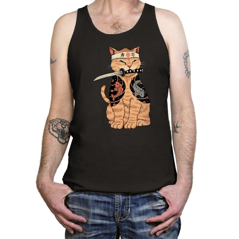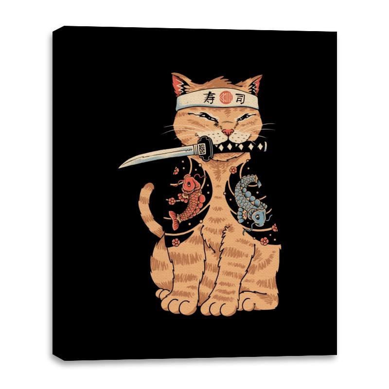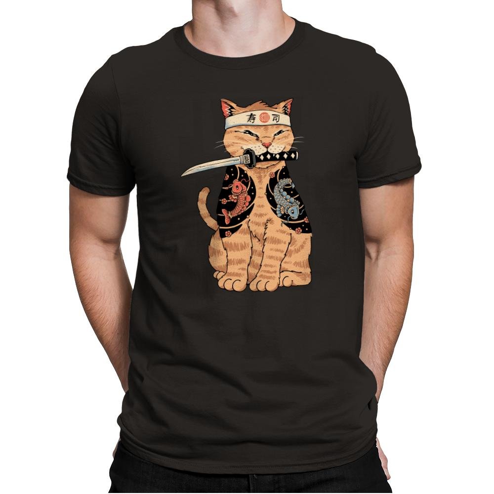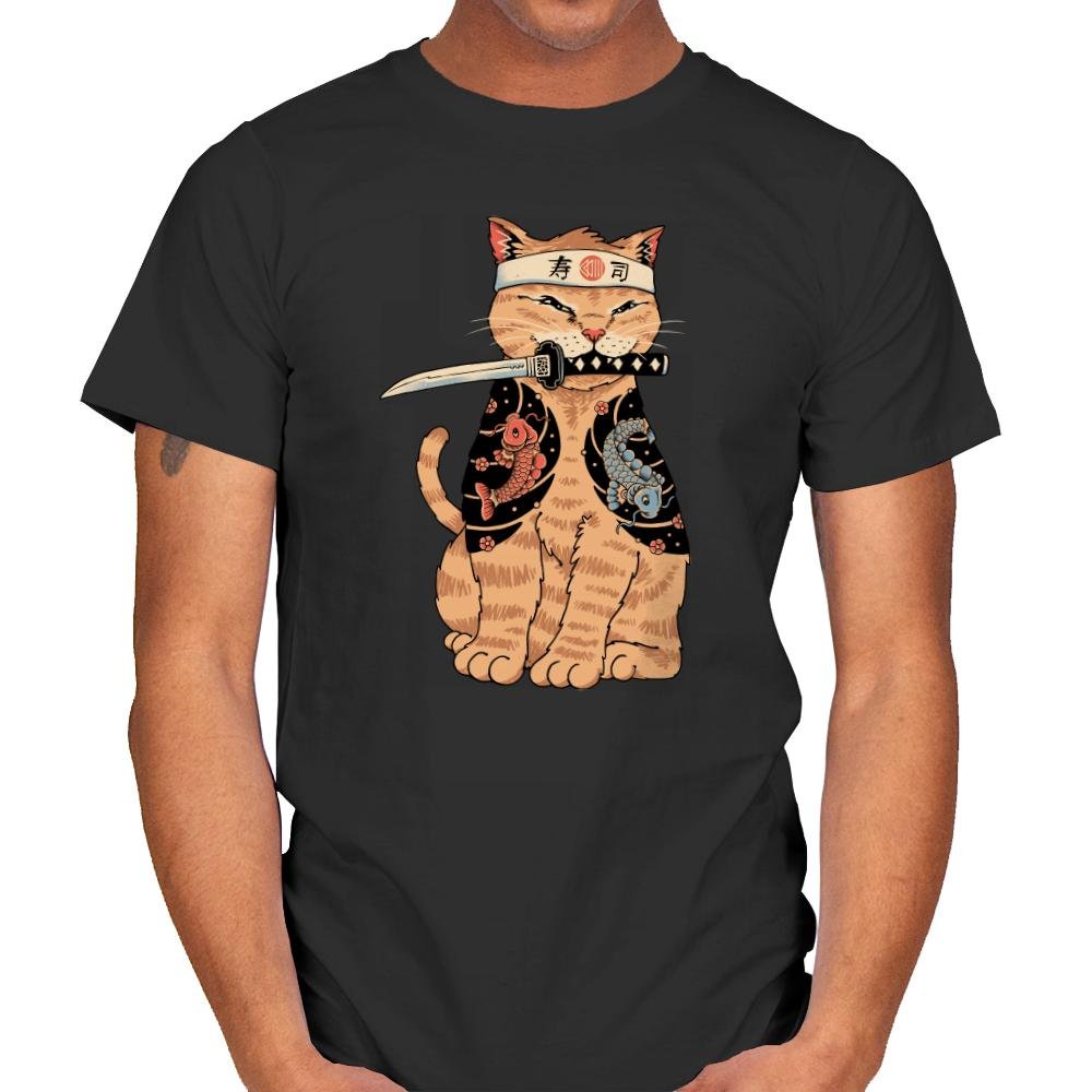 This design brings a fierce, yet adorable twist to the world of cats and martial arts. Featuring a determined cat wearing a traditional headband and holding a katana, the design combines the elegance of Japanese style with the playful charm of a pet. The cat is draped in a kimono adorned with koi fish, symbolizing strength and perseverance, making it a unique blend of cultural references and quirky humor.