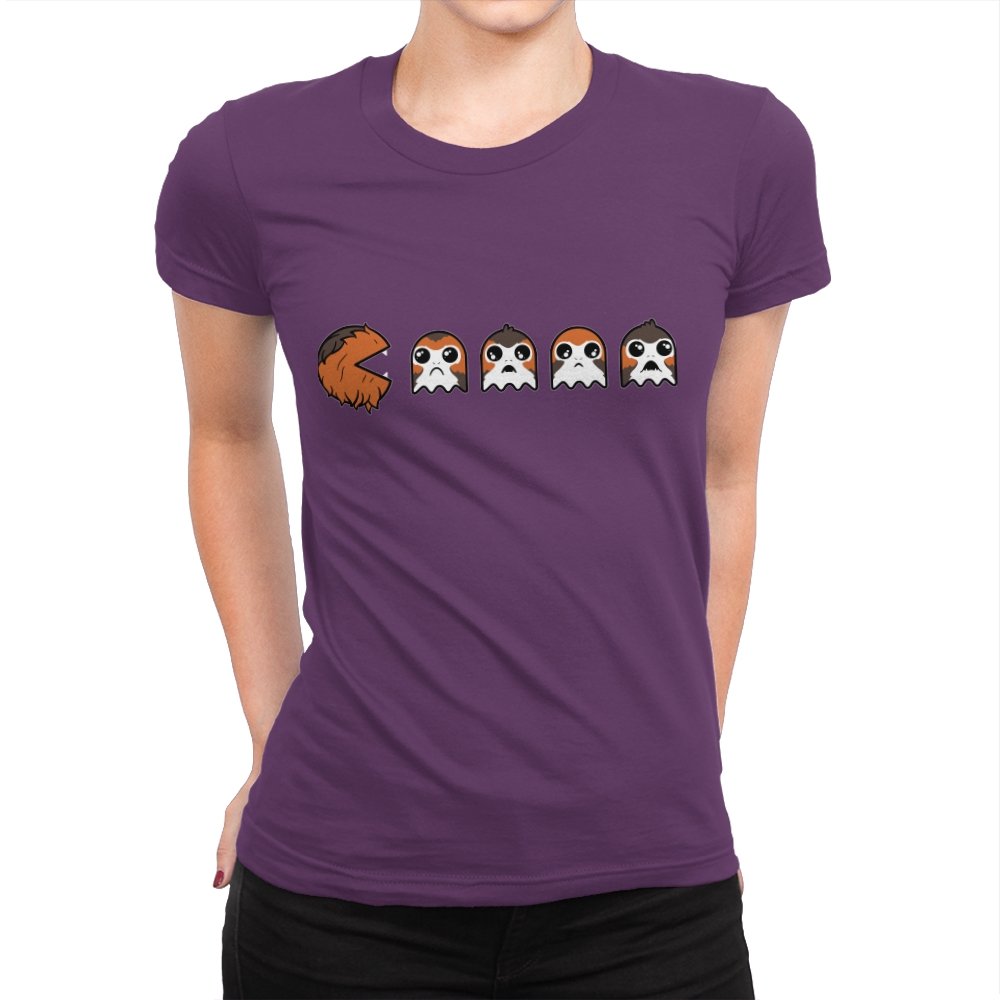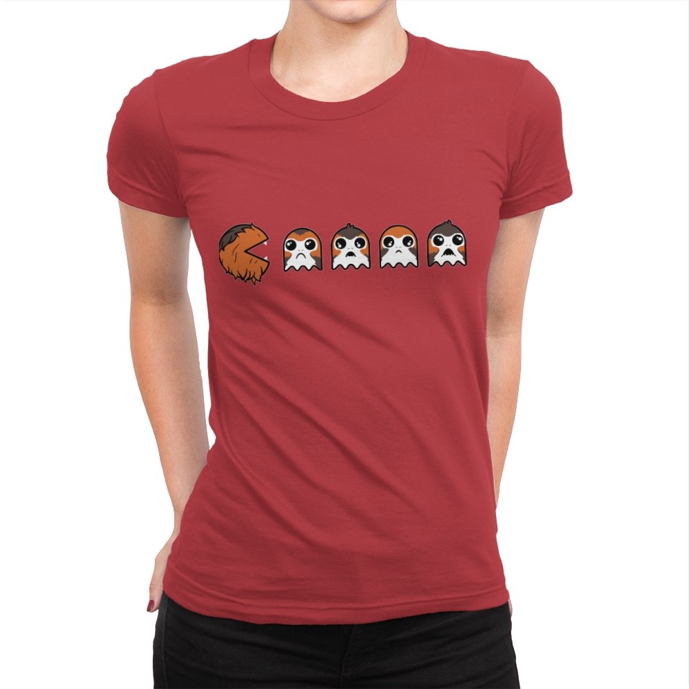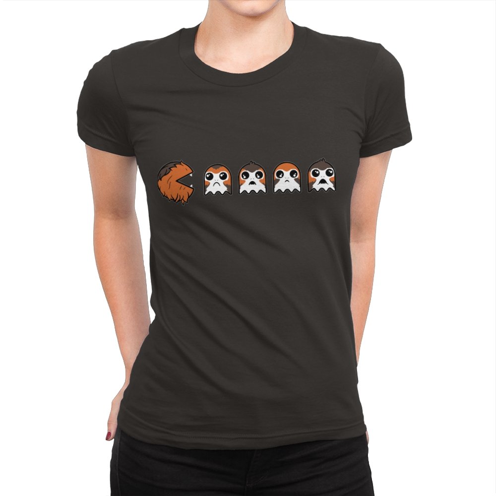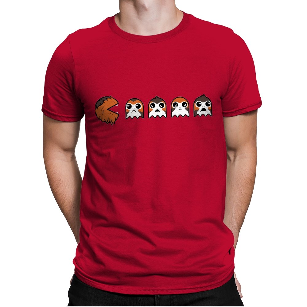 This design turns a familiar maze chase into a clever character study. A shaggy, side-facing figure opens the sequence, followed by a row of wide-eyed ghosts that clearly did not expect this matchup. The minimal layout and clean spacing do all the work, letting silhouette and expression sell the crossover. Fans who know both worlds will get the joke before the second ghost.