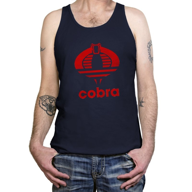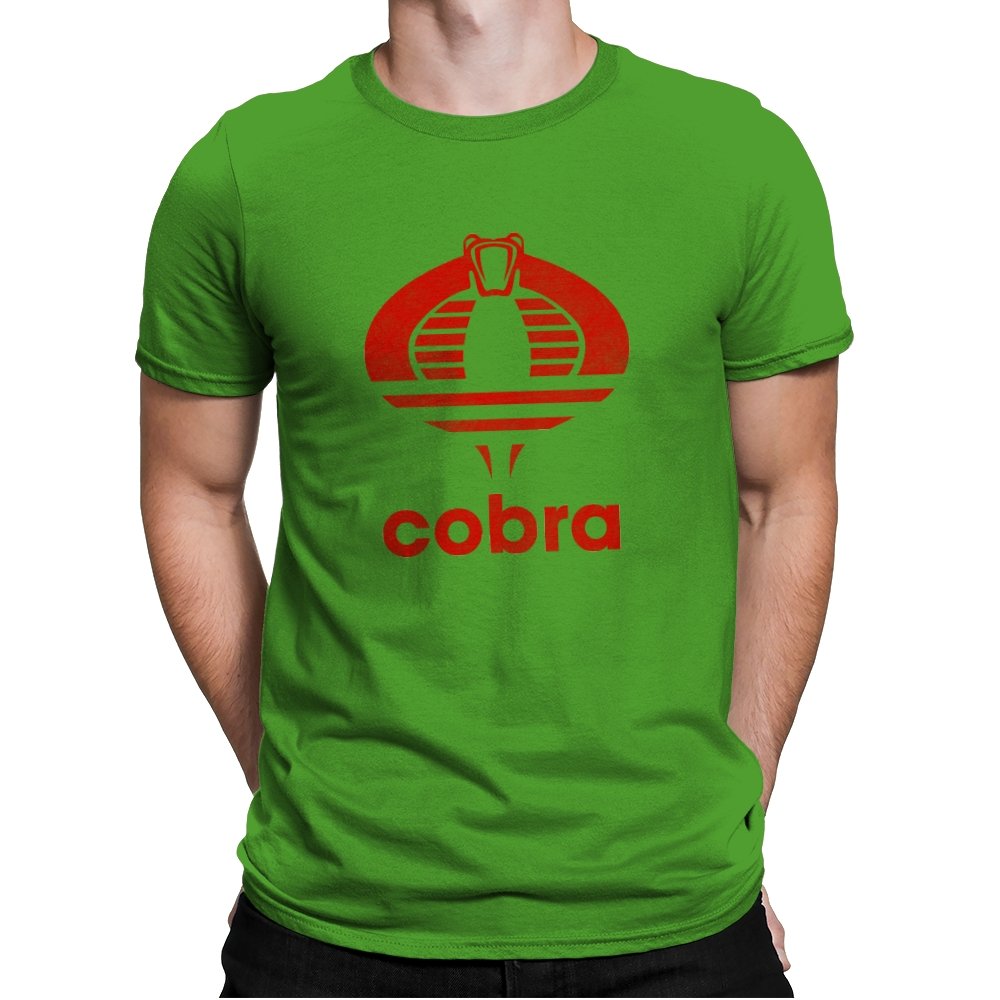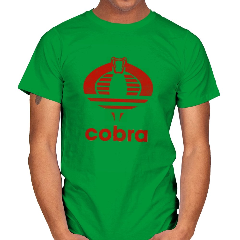This design strips things down to a bold, unmistakable symbol. A red cobra insignia sits centered on a dark field, cleanly rendered with sharp lines and perfect symmetry. There is no scene or character, just authority and recognition baked into a single graphic. If you know the source, the message is immediate and unapologetic.
