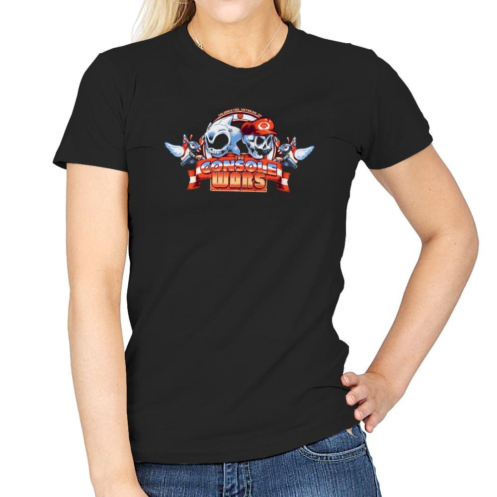This design frames a long-running rivalry as a worn-in crest, complete with skull mascots, wings, and battle scars earned over countless late nights. The composition feels like a championship emblem for players who picked sides early and never really stopped caring. Bright colors and bold symmetry give it the look of an old arcade marquee filtered through competitive pride. If you remember arguing about controllers and cartridges, the reference is obvious.