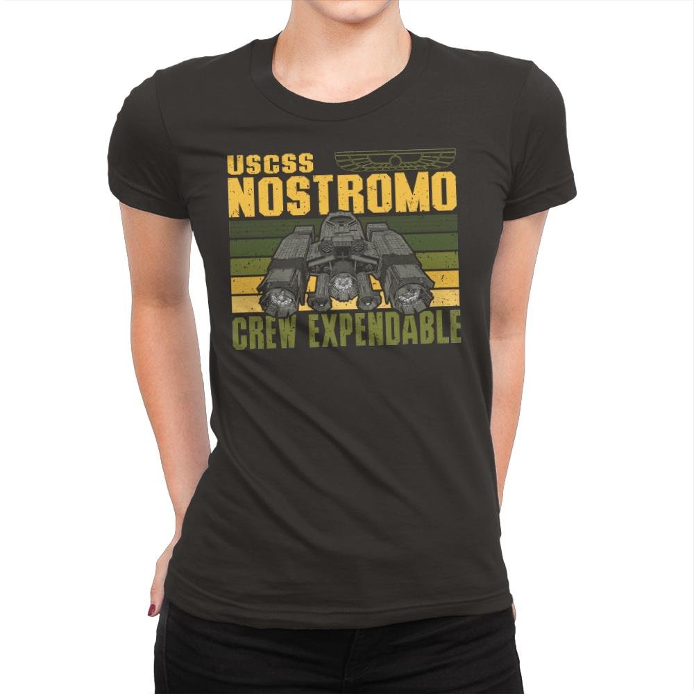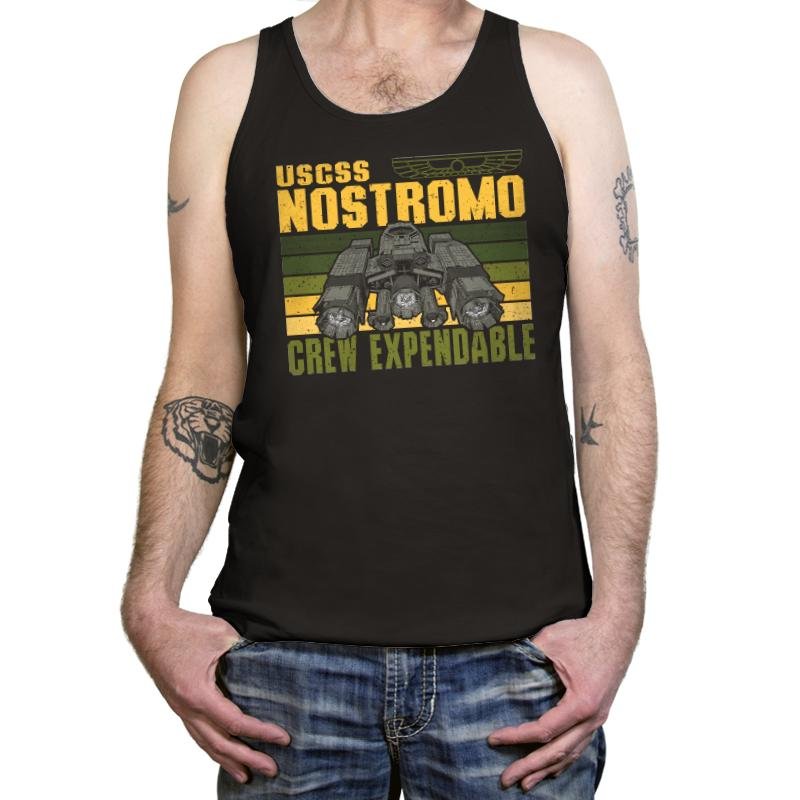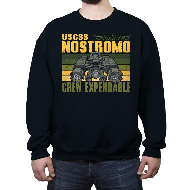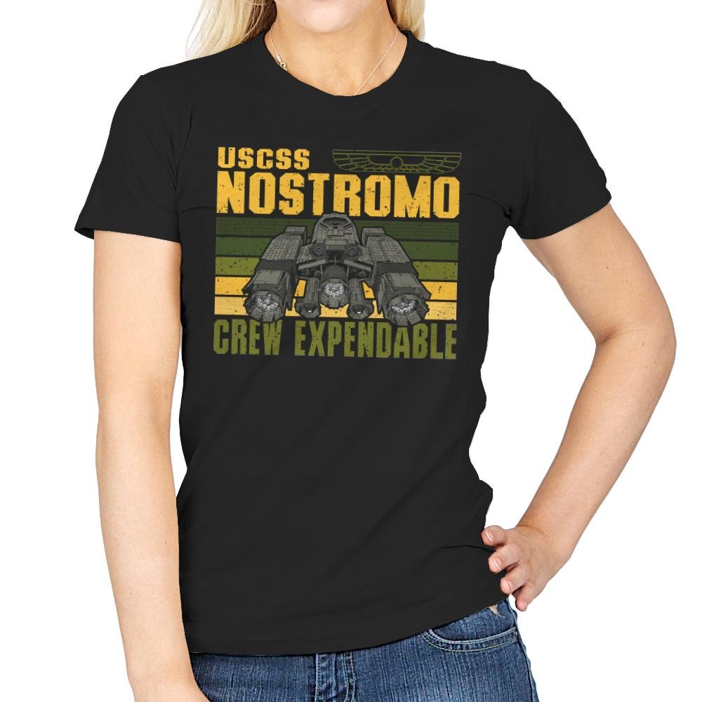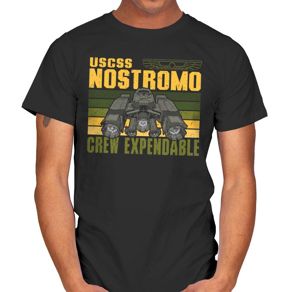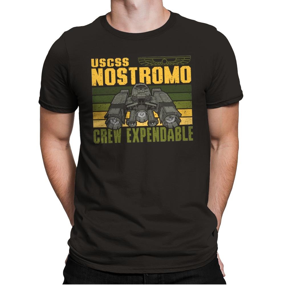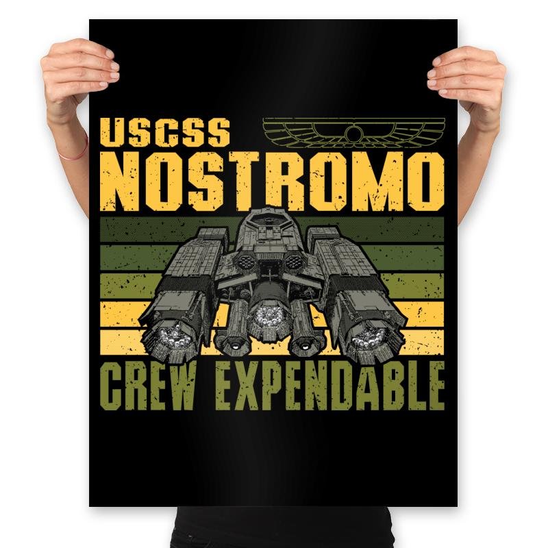 The Crew Expendable design looks like a corporate mission patch from a future that never cared about its people. The ship sits heavy and industrial, framed by worn stripes and blunt text that says everything without emotion. It feels procedural, cold, and deeply aware of the math behind survival. Anyone who knows the reference understands the tone instantly.
