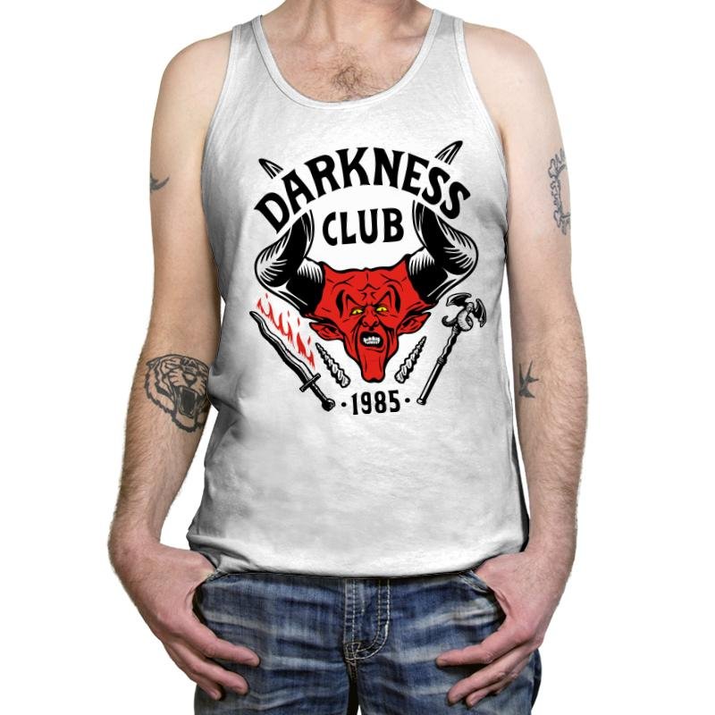 Darkness Club feels like a membership badge pulled from a forbidden back room, stamped with fire, steel, and attitude. The horned red face sits front and center, flanked by blades and tools that suggest ritual, rebellion, and a very specific era of underground cool. The bold lettering and 1985 date lock it into a time when clubs, comics, metal, and fantasy all fed off the same energy. If you get the reference, you already know why this image works.