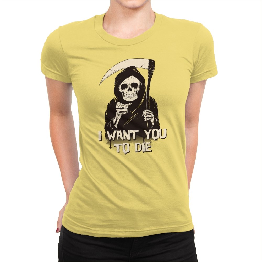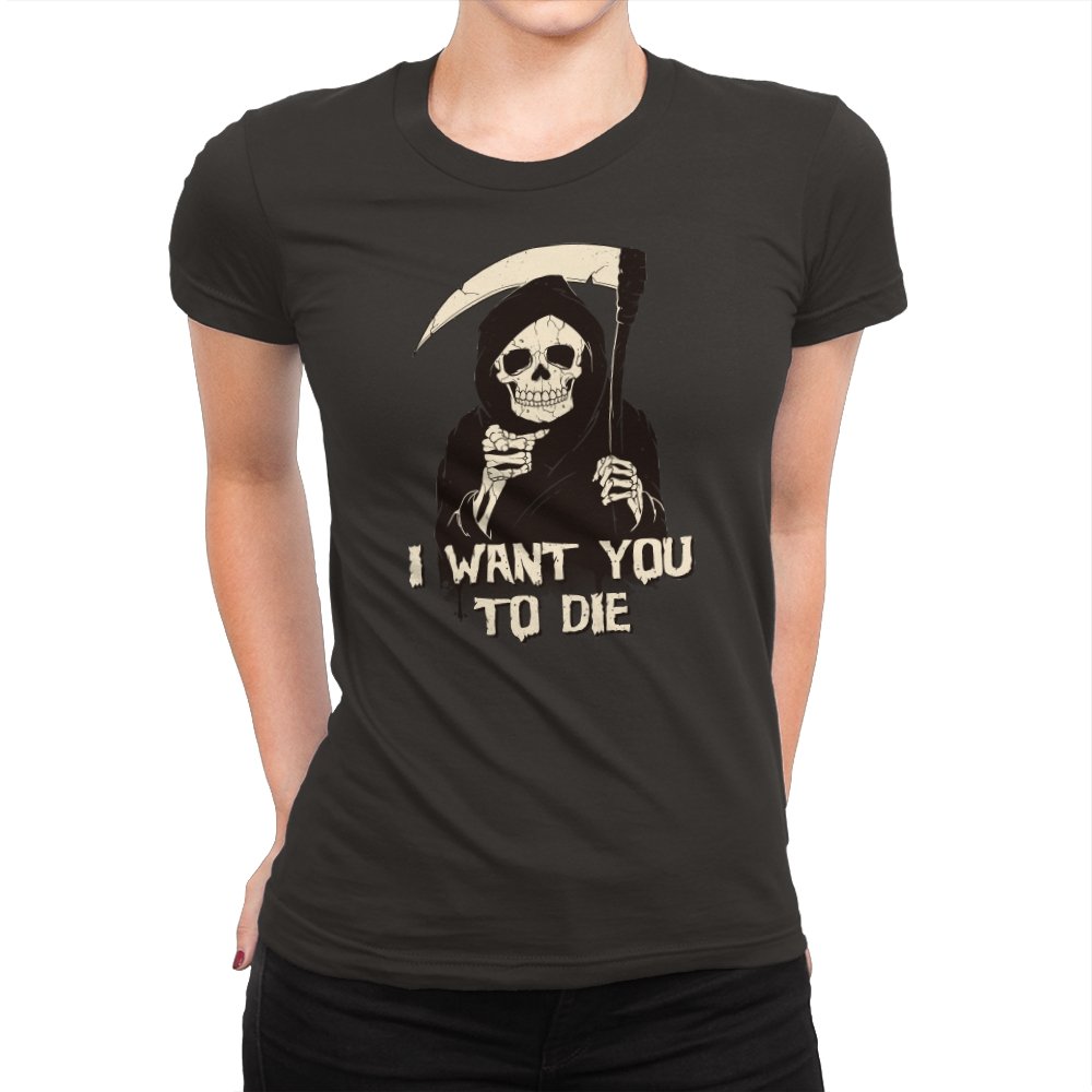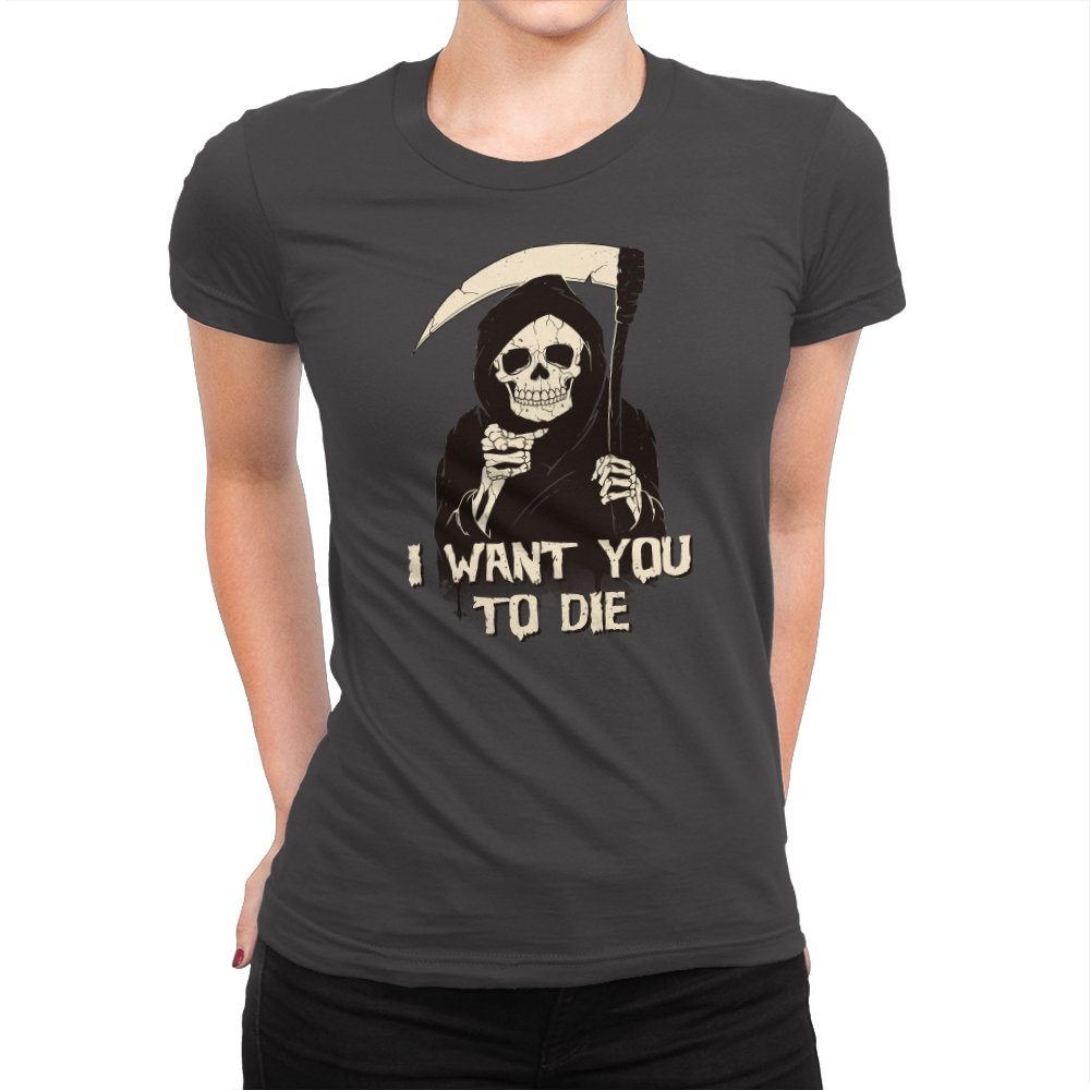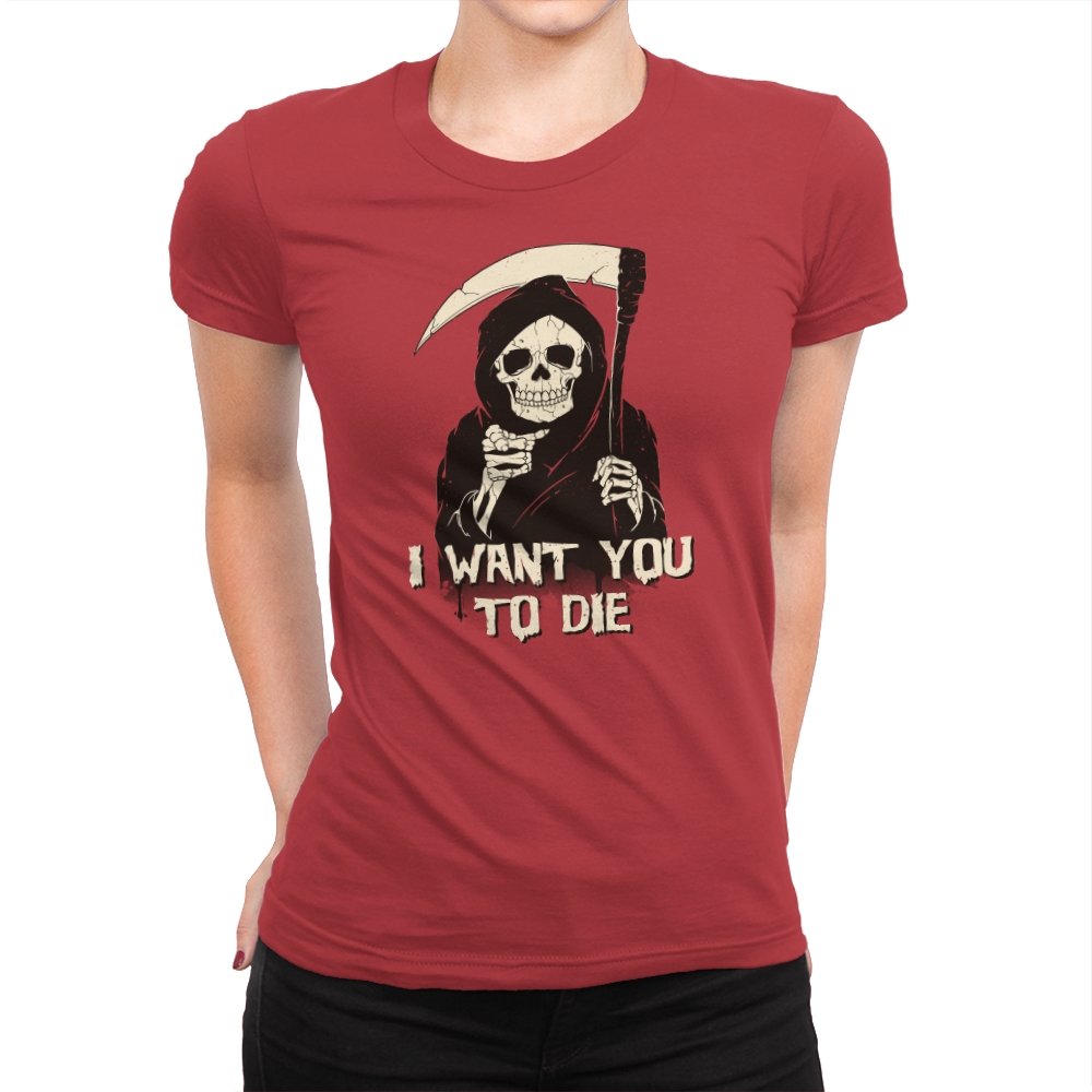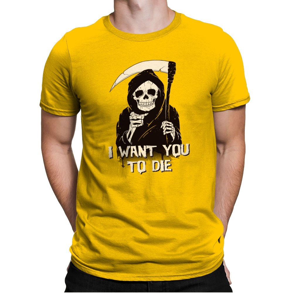 Death Chose You! riffs on the old enlistment poster by swapping the recruiter for the reaper. A grinning skull in a black hood points straight at the viewer while a scythe rises over one shoulder. The background is a flat, aggressive red that makes the bone and cloak pop without any fancy effects. Thick, distressed lettering beneath gives the message a pulp horror bite that feels more darkly funny than grim.