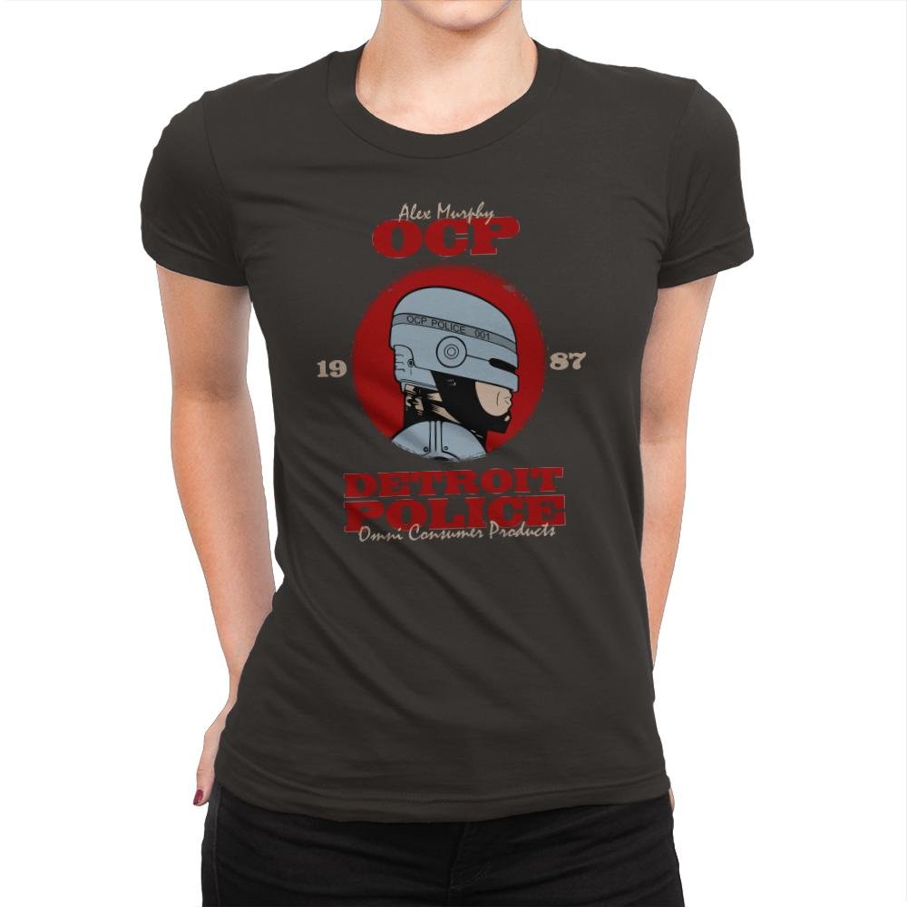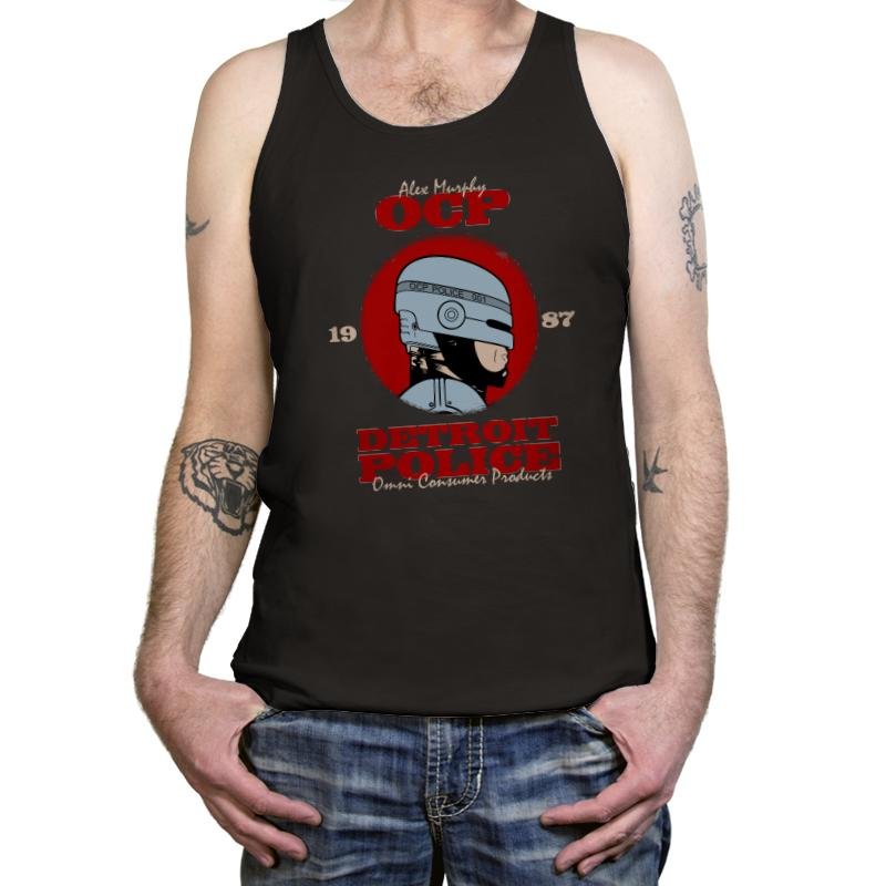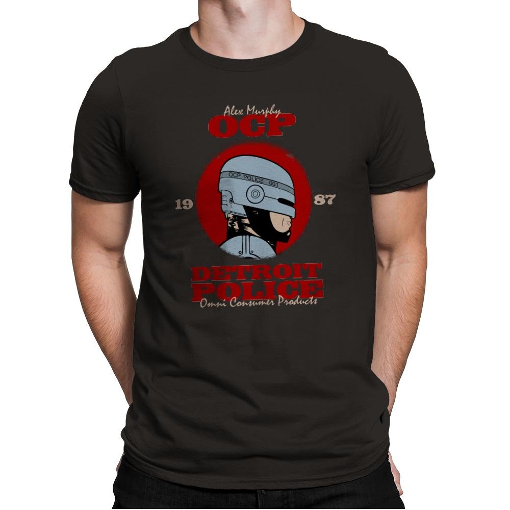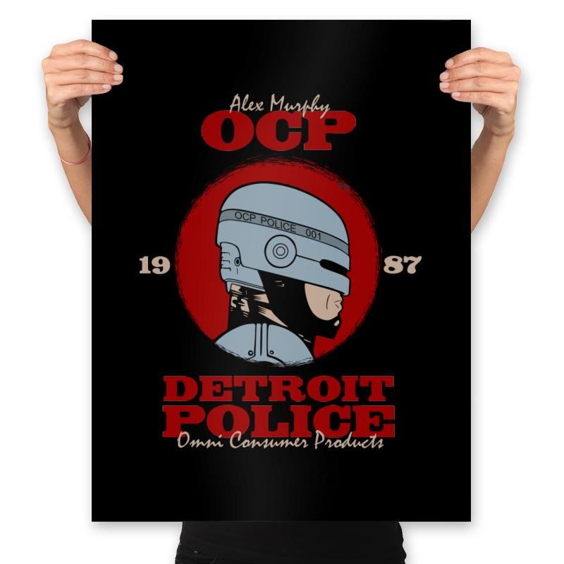 This design pays homage to the classic RoboCop film, featuring the iconic helmeted figure of Alex Murphy as part of the Detroit Police force, under the umbrella of Omni Consumer Products (OCP). The bold text and retro color scheme make it a perfect tribute to the gritty, dystopian world of RoboCop, with a nod to both the hero and the corporate villains that shaped the narrative. The design cleverly incorporates the year “1987,” adding an extra layer of nostalgia for fans of the original film.