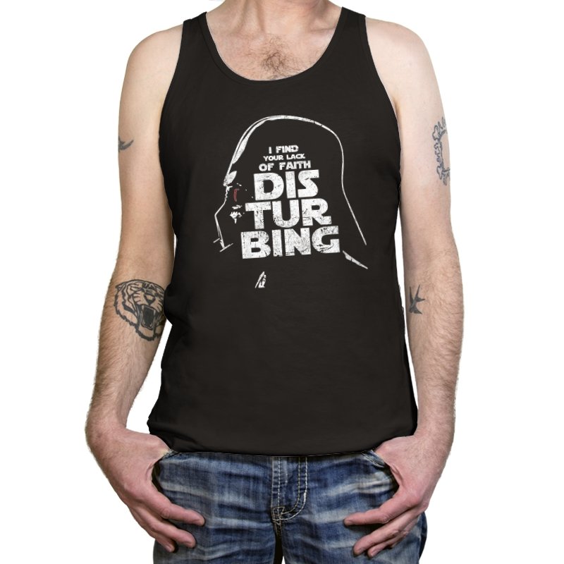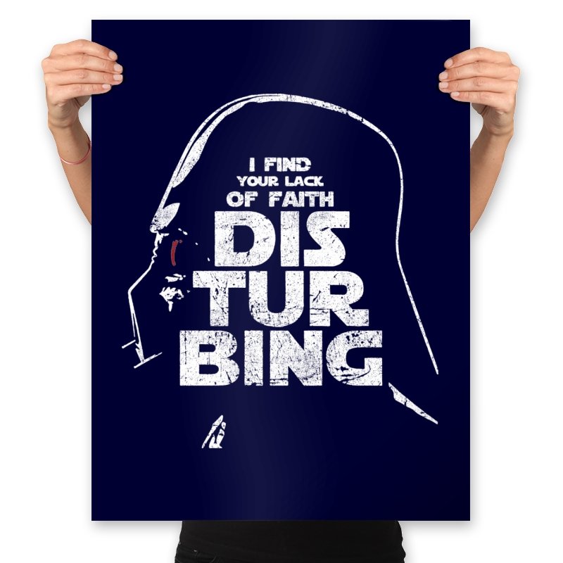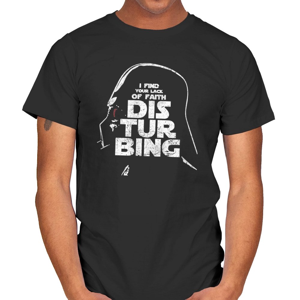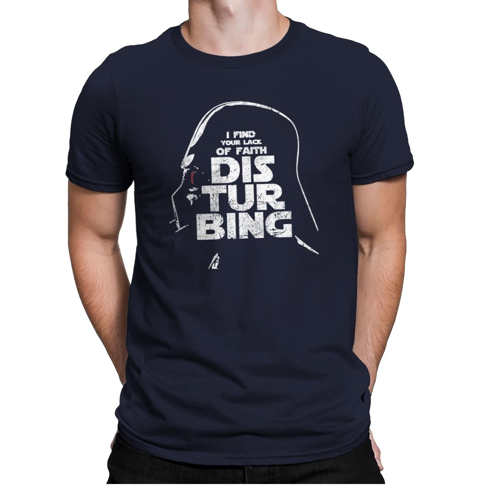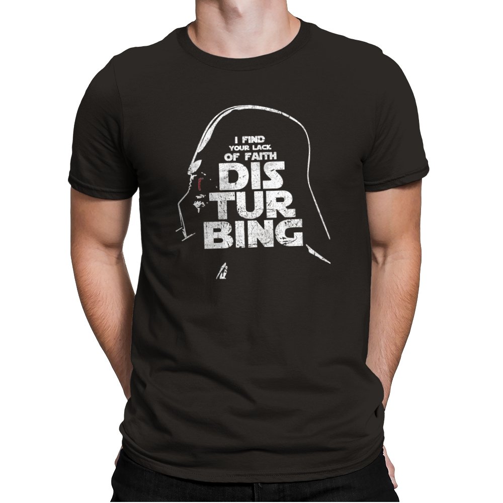 This design blends a familiar silhouette with a sharp line of dry humor rendered in large, distressed lettering. The helmeted profile sits in shadow while the text takes center stage, creating a visual hierarchy that feels blunt and authoritarian. Fans know the reference instantly and can appreciate how the stark grayscale palette makes the joke land without extra noise. It is a tribute to a villain who speaks softly and still steals the room.