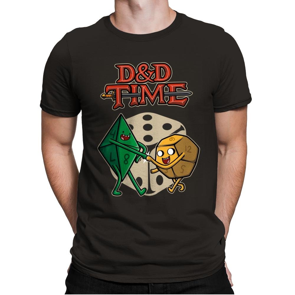 This design blends tabletop chaos with an unmistakable cartoon energy. A smiling d20 and d8 clasp hands as if heading into a dungeon together, shaped and shaded like animated characters with goofy charm. Behind them sits a chunky six sided die rendered in soft gray tones that give the scene some depth and contrast. The title above sets the mashup joke for anyone already fluent in fantasy TV and dice math. It is playful without sacrificing the nerdy core of what makes rolling funny in the first place.