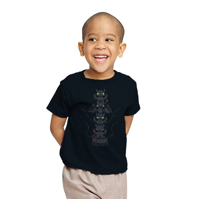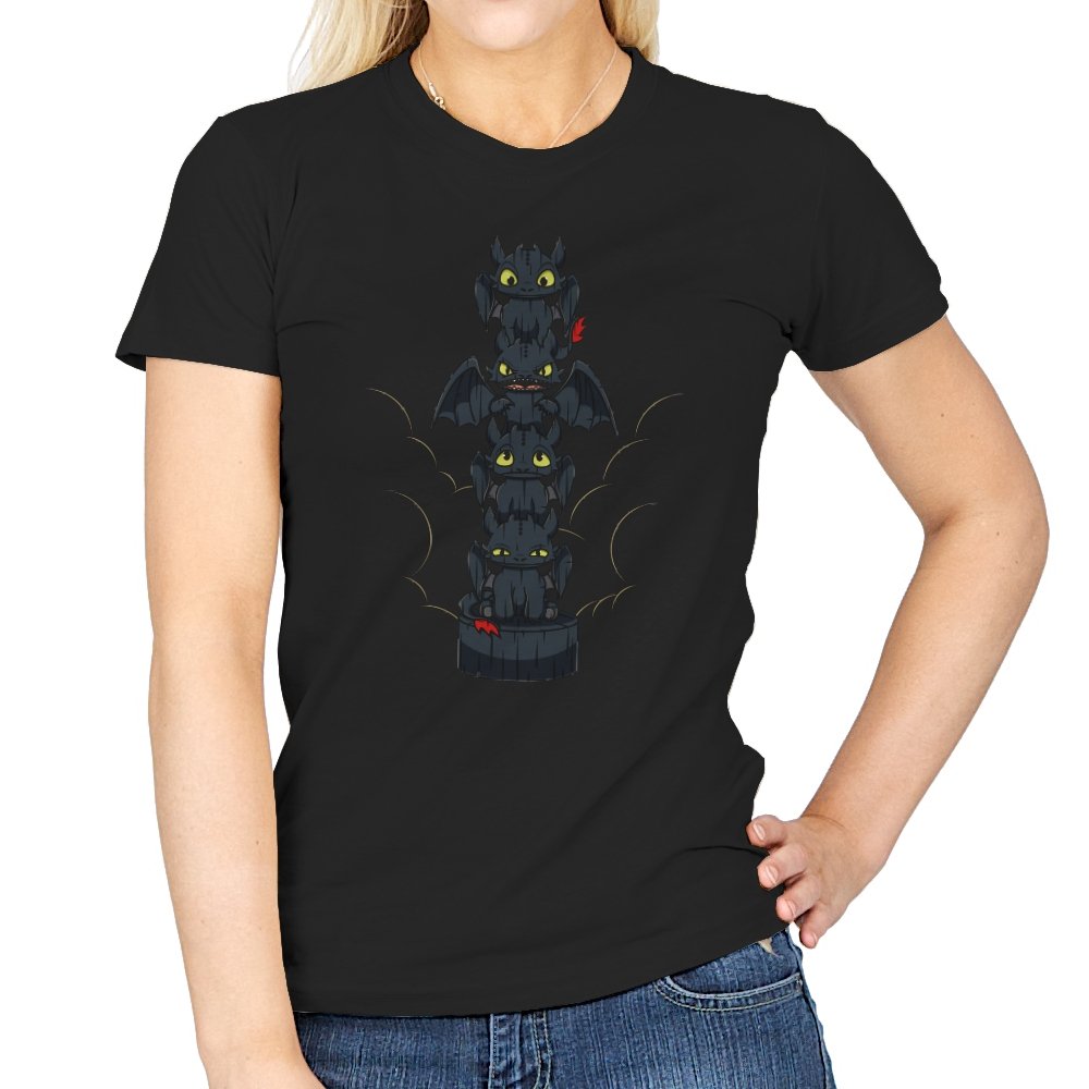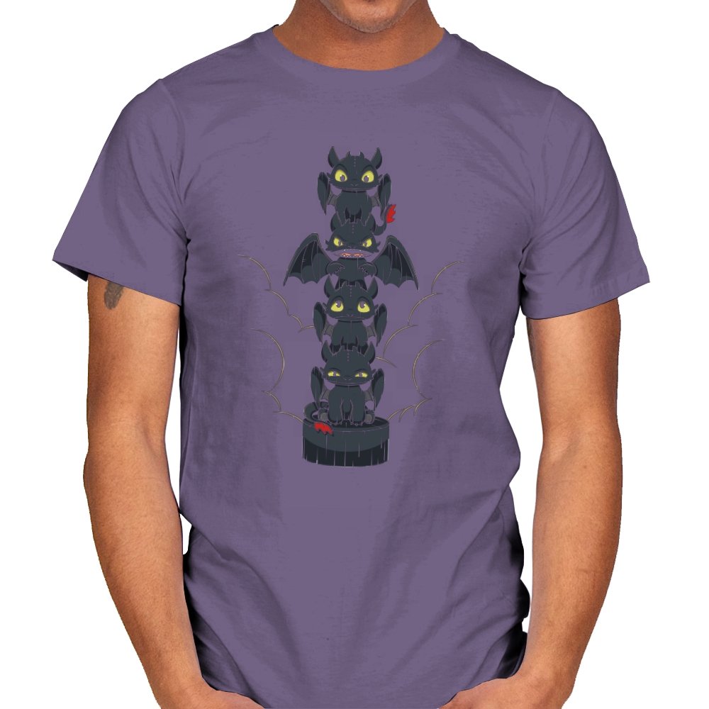 “Dragon’s Totem Moods” presents a stack of adorable, mood-shifting dragons, each one showing off its unique personality. From fierce to playful, the design highlights the varying emotions of these little creatures, making it a fun and charming piece for any fan. The stack of dragons is crowned with a fiery one at the top, adding a touch of mischief to the overall theme.