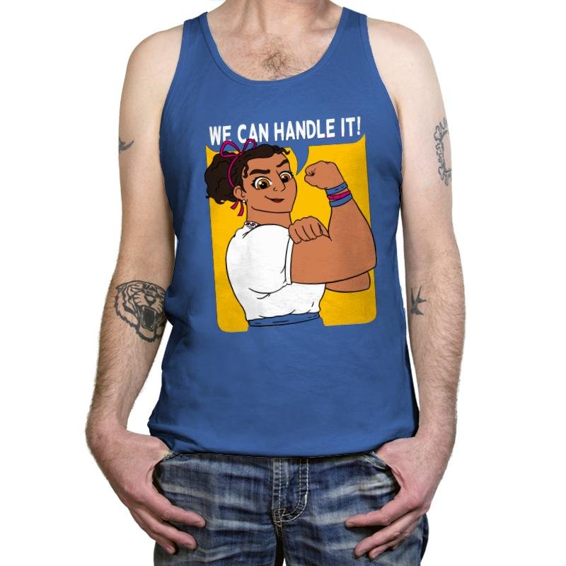 This design riffs on the classic wartime poster while swapping in a familiar animated strongwoman who makes flexing look effortless. The bold blue and yellow framing keeps the reference loud enough for fans who already know the film and family vibes behind it. The slogan across the top leans motivational without losing the playful wink that makes the character so beloved. It is equal parts parody and tribute.