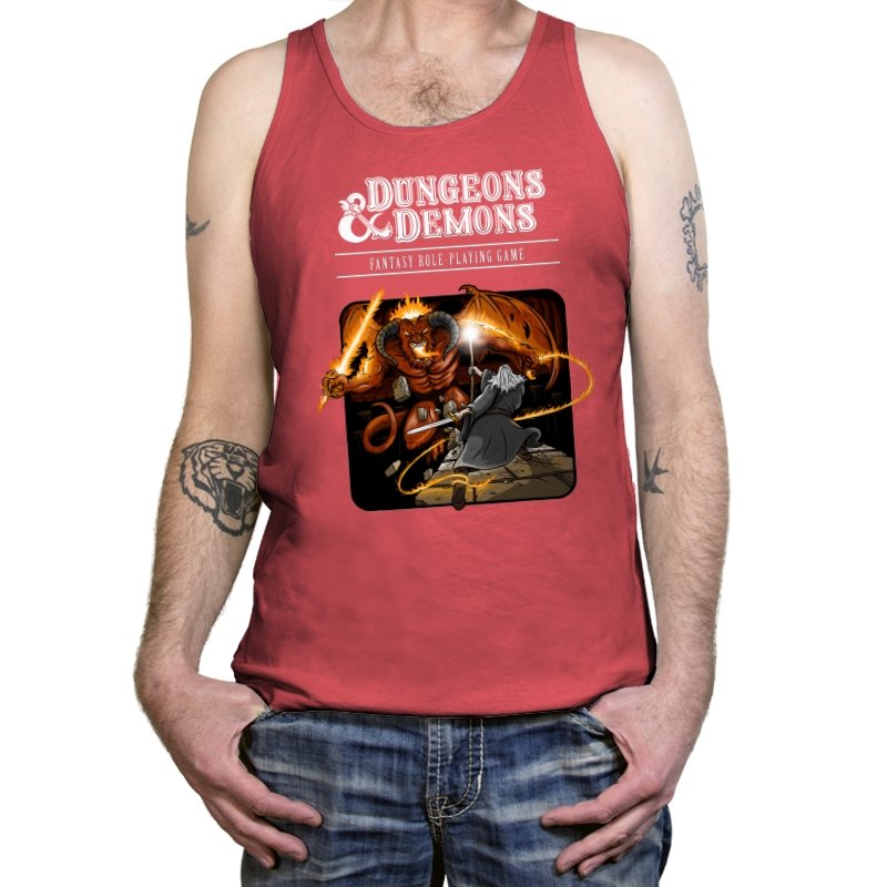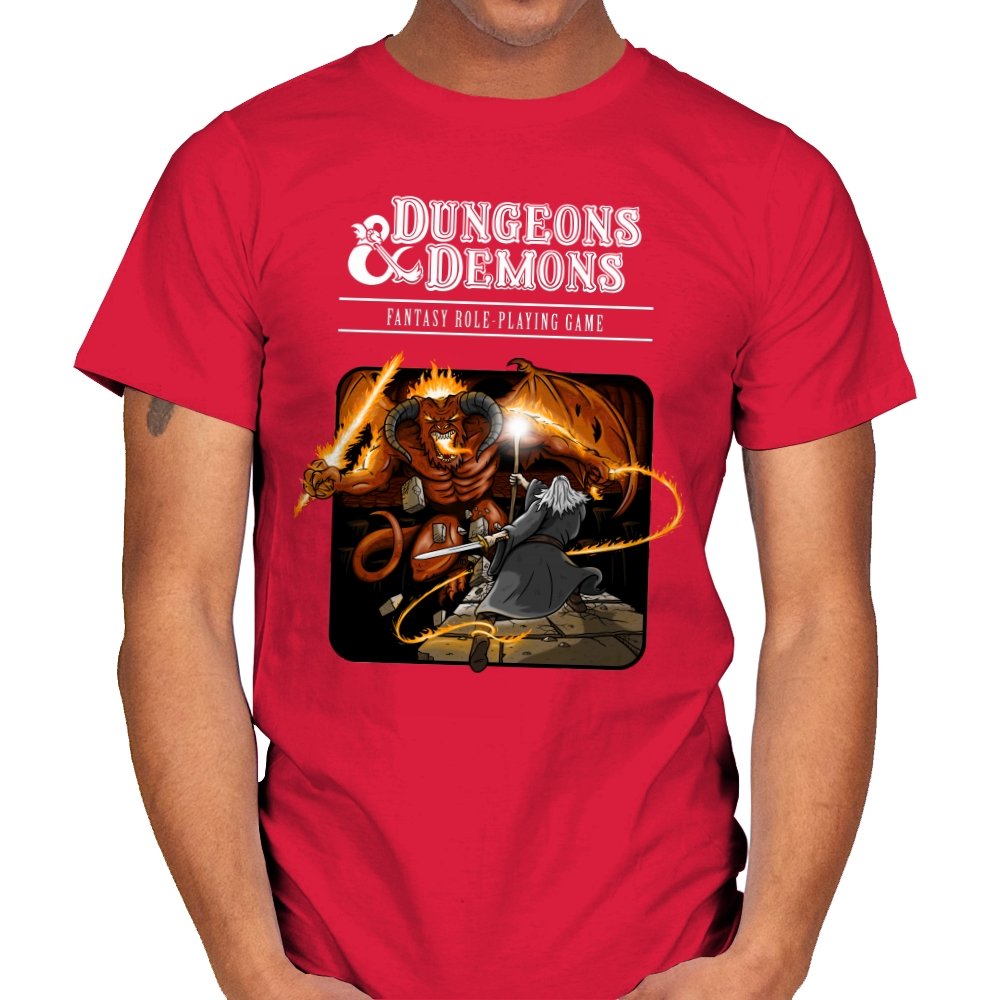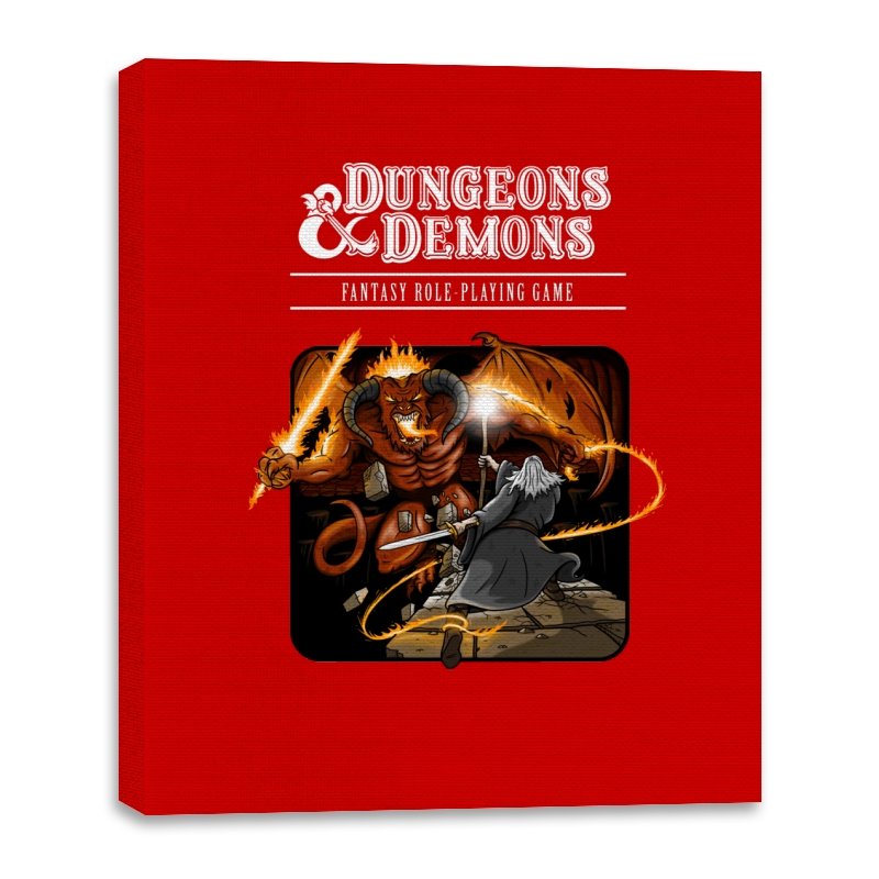 This design reads like a classic rulebook cover pulled from a basement shelf and brought to life mid-encounter. A robed spellcaster faces down a horned demon, fire and magic cutting across the frame in exaggerated motion. The layout and color choices lean hard into old-school fantasy art, where everything feels dramatic, dangerous, and slightly unbalanced. Anyone who grew up rolling dice and sketching characters in notebooks will catch the tone instantly.