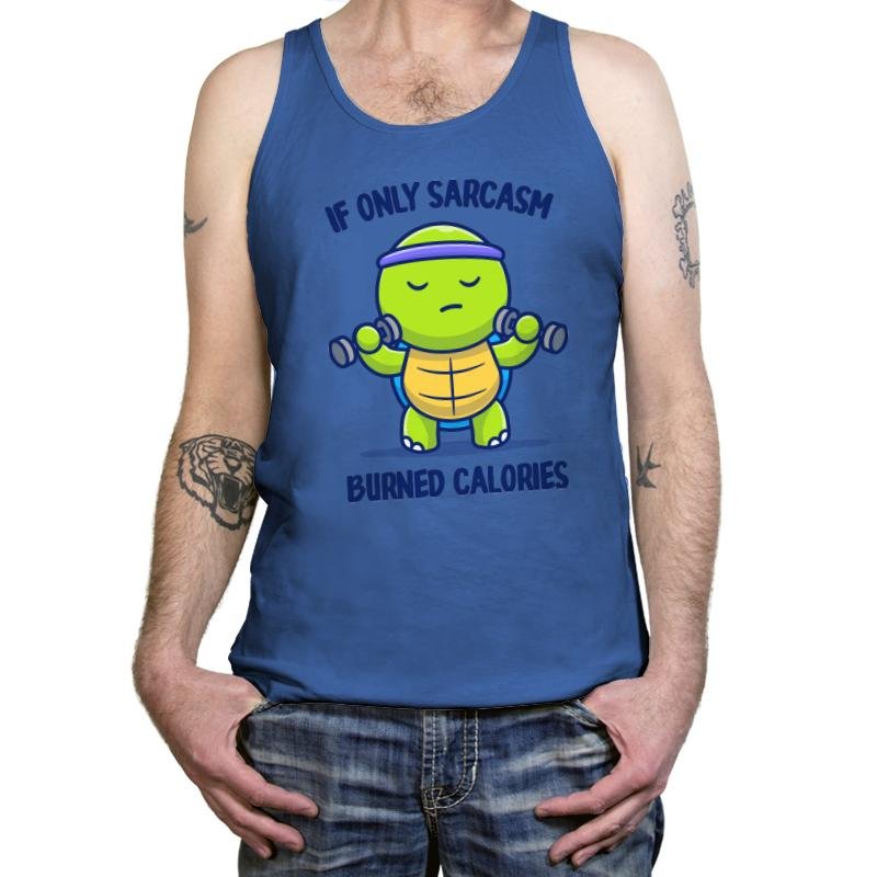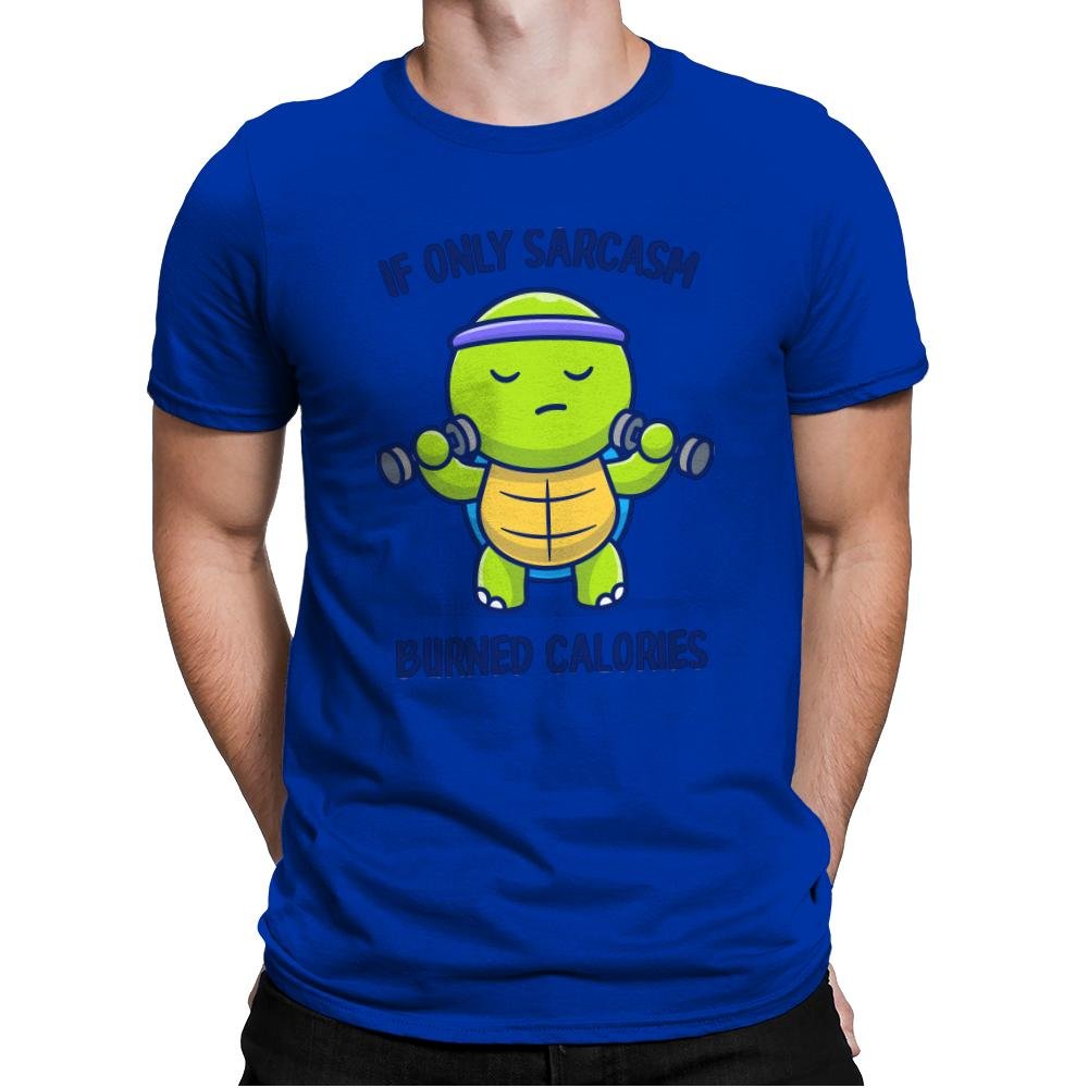 This design features a tiny gym turtle who has mastered the art of slow workouts and sharper comebacks. The joke lands through the text above and below the turtle, pointing out how much easier fitness would be if sarcasm counted as cardio. With its tiny dumbbells, blank expression, and classic headband, the turtle looks committed enough to try while also deeply unimpressed by the process. Fans of deadpan humor will get the bit immediately.