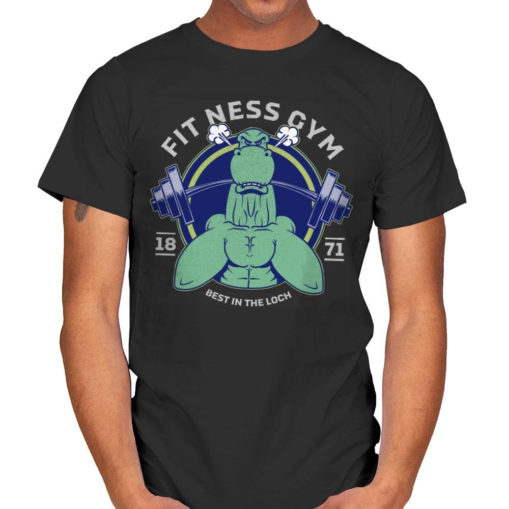 This design imagines the Loch’s most elusive resident as a shredded gym mascot who takes leg day and bicep curls very seriously. The creature stands center frame with bulging muscles and a barbell across its shoulders, steam puffing from its nostrils as if mid rep. The text spells out Fit Ness Gym with the founding year split on each side and a cheeky Best in the Loch tagline below. Fans instantly catch the pun and the mix of cryptid folklore with old school gym culture.