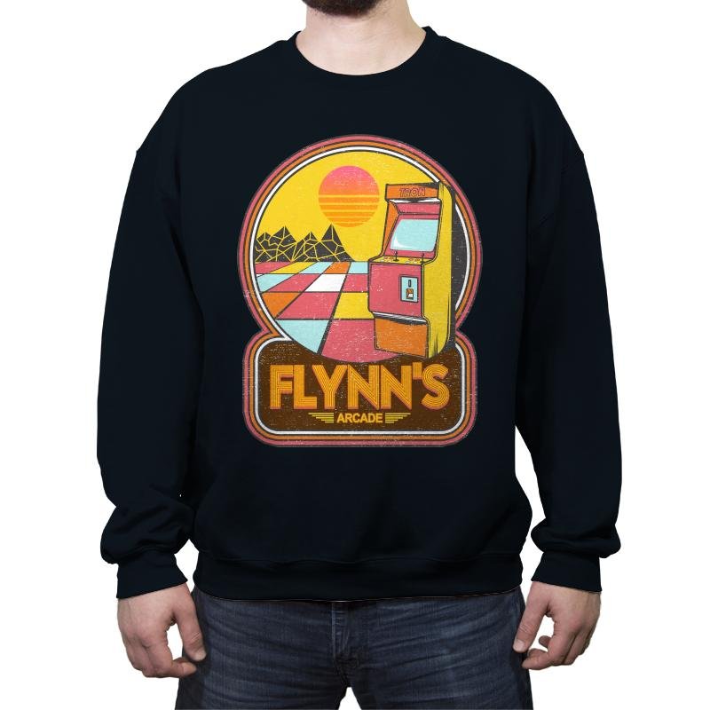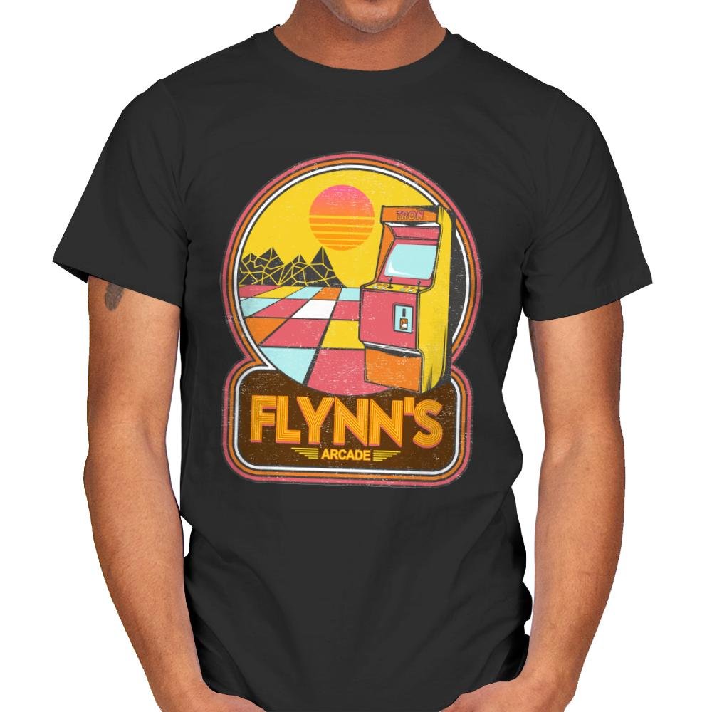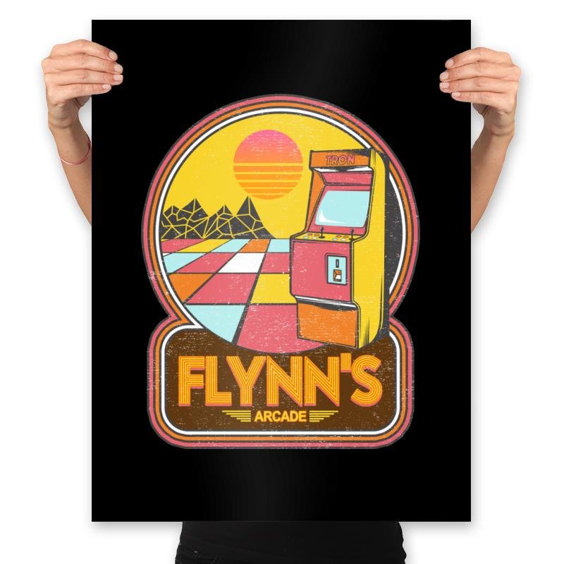 This design recreates an iconic digital hangout as a warm, retro badge. A lone arcade cabinet sits on a glowing grid floor, framed by a stylized sunset and geometric landscape that feels half memory, half simulation. The rounded emblem and faded color palette pull from early arcade signage and synth-era optimism. It assumes you already know why this place mattered more than it looked.