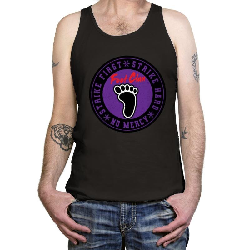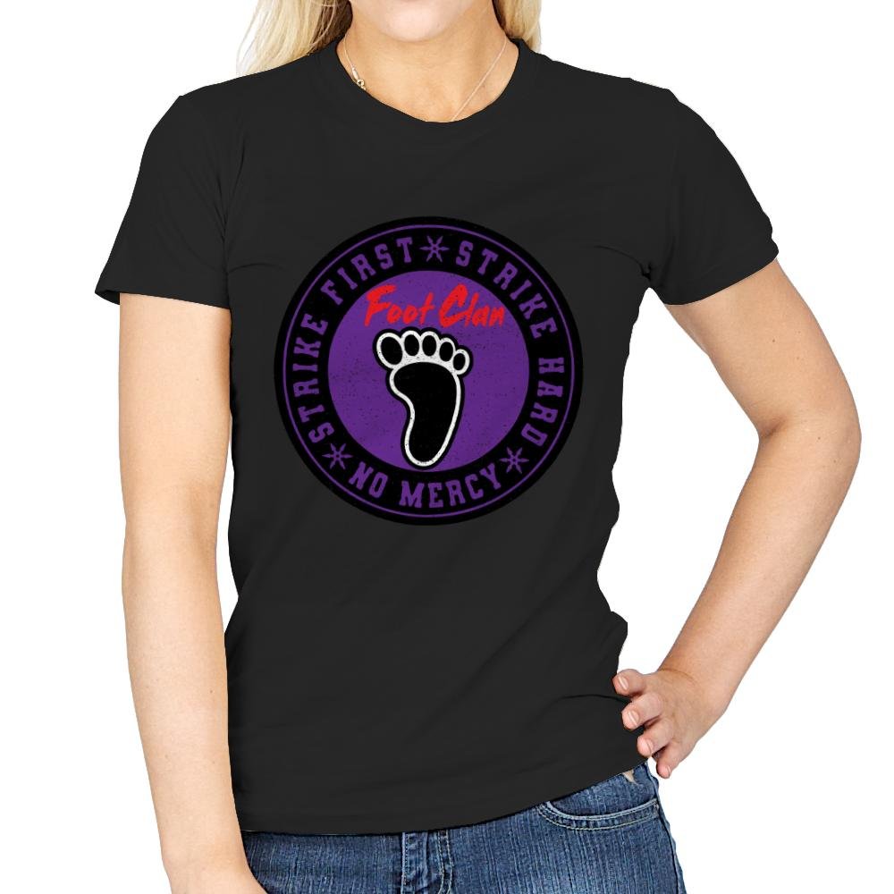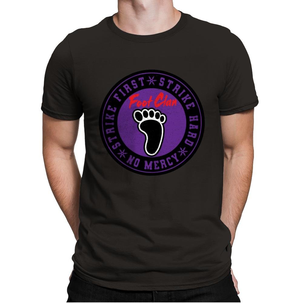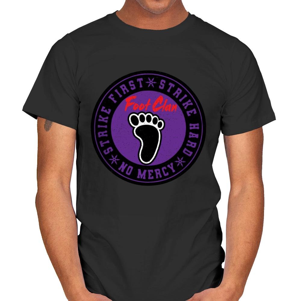 This design treats the ninja syndicate from that beloved sewer dwelling cartoon as if they were a ruthless martial arts gym. The circle badge layout, bold purple ground, and distressed ink make it feel like merch for a dojo where anonymous foot soldiers train. The central footprint logo underlines the joke, while the red script text gives it an extra splash of attitude. Fans who grew up watching masked henchmen get kicked across alleys will understand immediately.