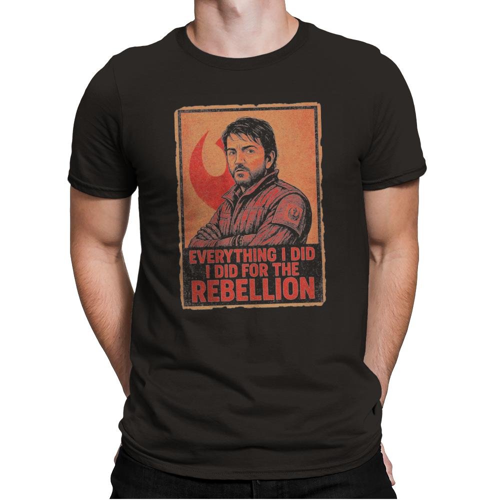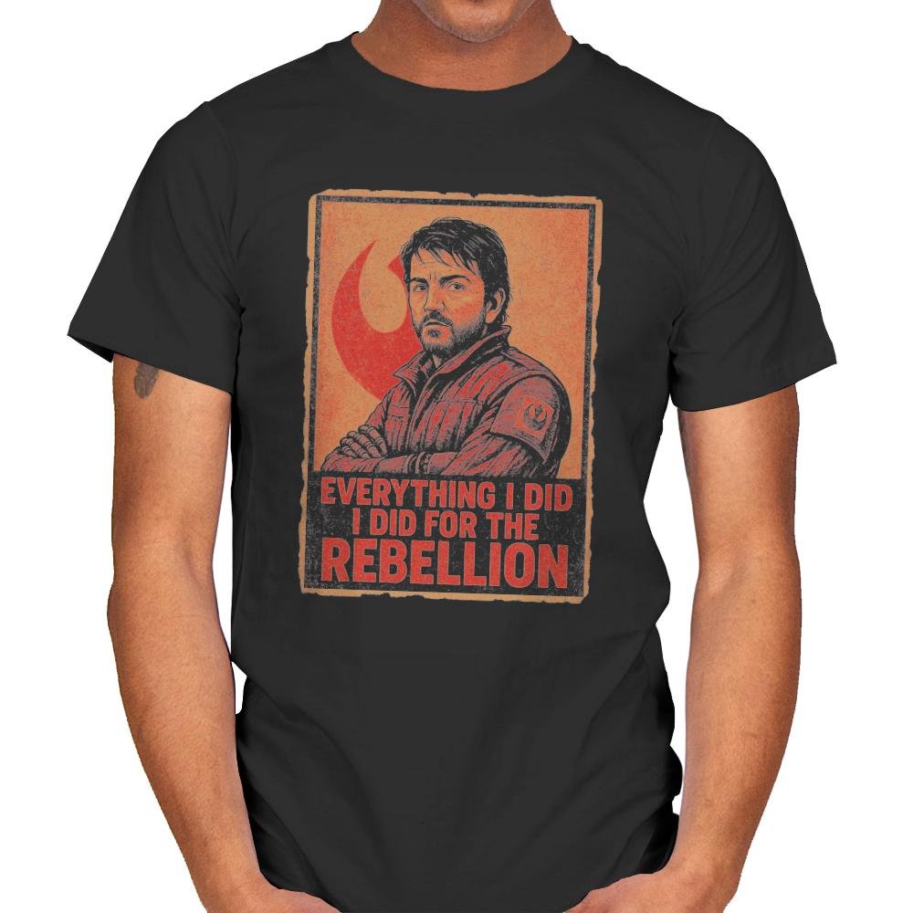 This design frames a grim freedom fighter like a propaganda poster that has survived smoke and ash. Rendered in coarse red and charcoal tones, he stands with folded arms and a wary stare, the starbird crest looming behind him like a faded seal of a government that does not yet exist. The text beneath reads like a confession and a justification, acknowledging the quiet crimes and sacrifices that define insurgency before the history books tidy it up. It feels pulled from a secret wall in an occupied city.