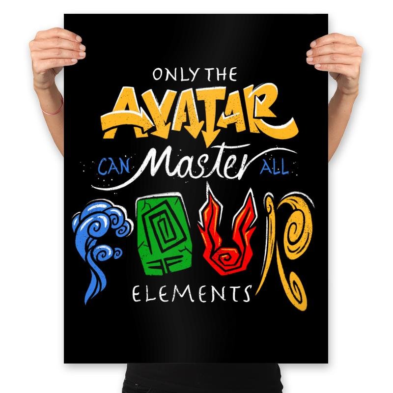 This design lays out the four classic elements with a knowing wink to anyone who grew up watching animated martial arts and bending styles. The typography mixes brushy strokes with sharp edges, while each element gets its own iconic symbol and color. There is no need for characters or scenes here. The reference hits the moment you spot the earth glyph next to curling fire, flowing water, and swirling air.