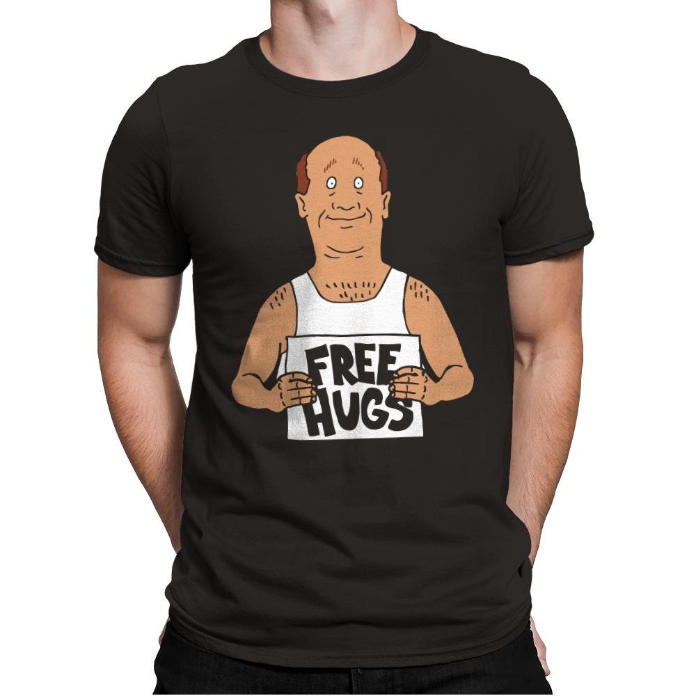This design centers on an awkwardly sincere figure holding a handmade sign with absolute commitment. The expression lands somewhere between hopeful and uncomfortable, which is exactly why it works. The simple drawing style and blunt message feel lifted straight from a deadpan animated moment. It trusts the silence around the joke.