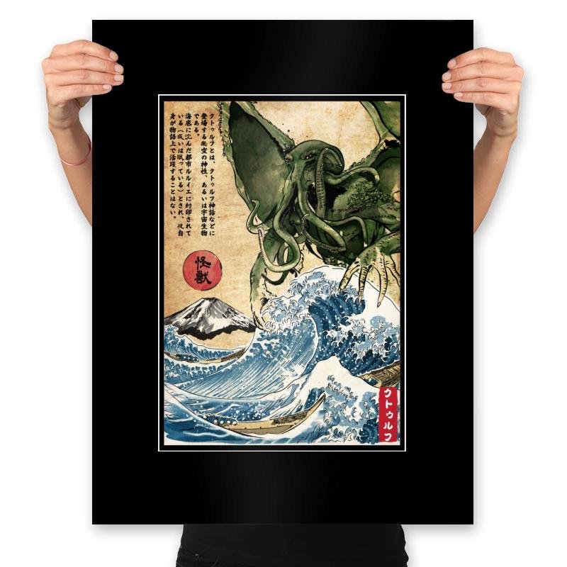 It works for anyone who enjoys mixing high culture with weird fiction. The vibe is scholarly with a wink, suggesting you know your ukiyo-e and your eldritch lore. It also reads well as wall art, giving living rooms and studios a touch of unsettling elegance.