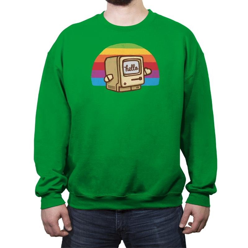 This design turns an early personal computer into a cheerful mascot of tech nostalgia. The chunky beige case, floppy drive slot, and smiling monitor feel straight out of the formative years of Silicon Valley. The handwritten “hello” on screen references those first friendly boot ups that made computers feel less like machines and more like companions. Behind it, a faded rainbow arc nods to the bright optimism that shaped that era of design and engineering.