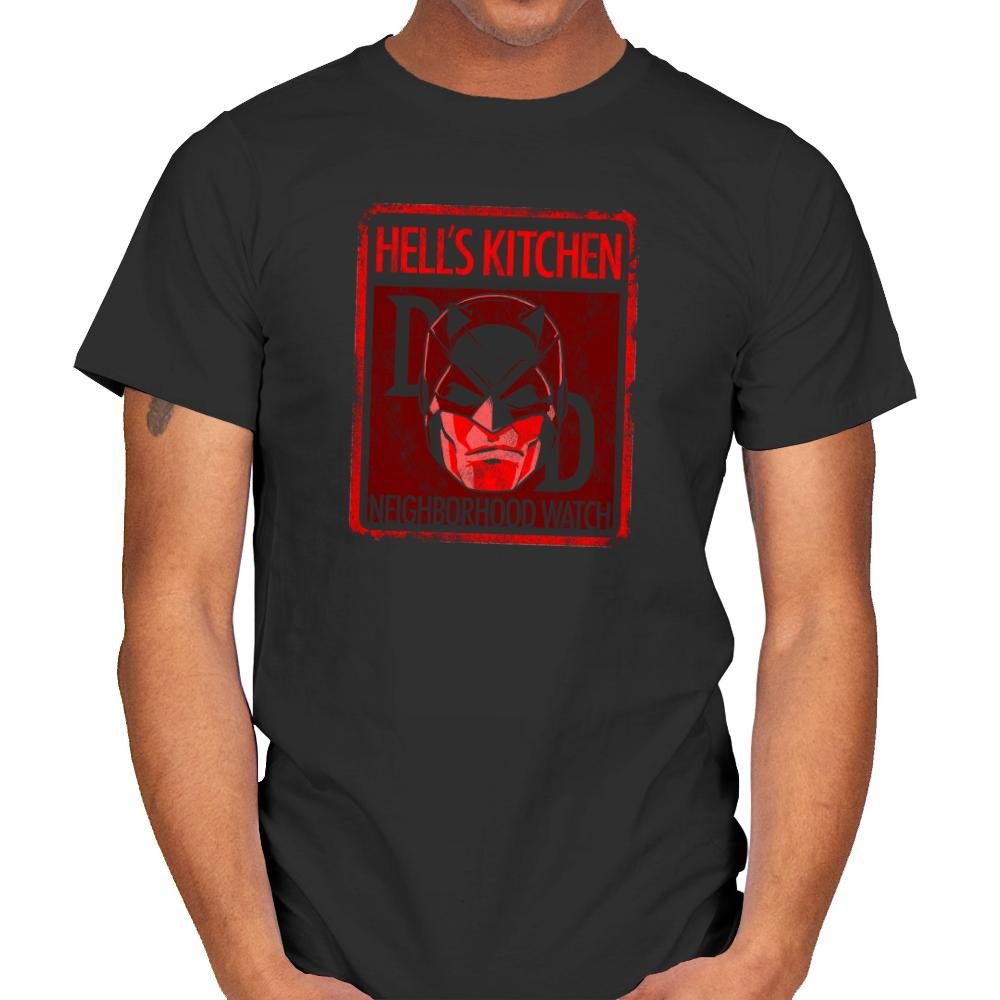 A grim red poster warns that Hell’s Kitchen has its own neighborhood watch, featuring a horned vigilante who prefers billy clubs to clipboards. The portrait is stark and graphic, with heavy shadows cutting across his mask and jaw. Distressed borders and blocky lettering make the design feel like a flyer wheat-pasted to a brick wall at midnight. Fans already know this is less about parking violations and more about rooftop justice.