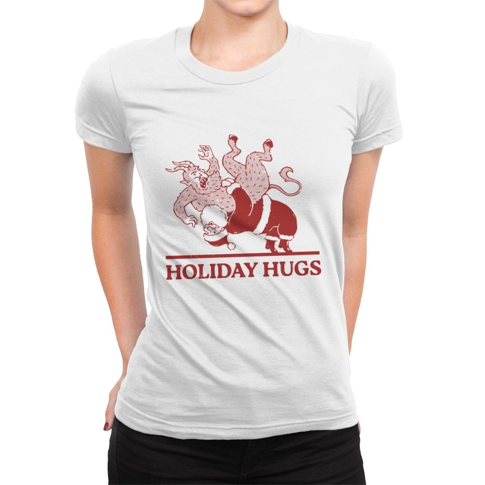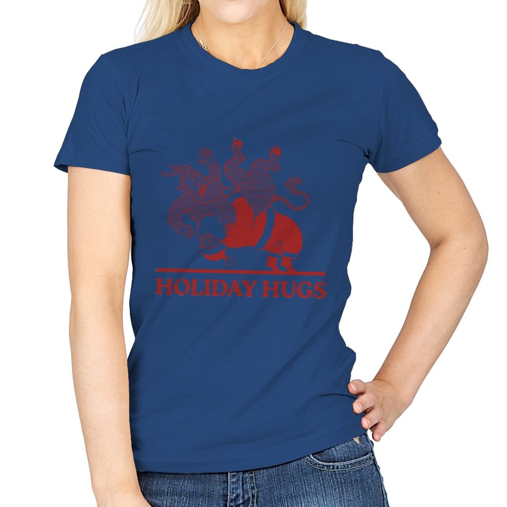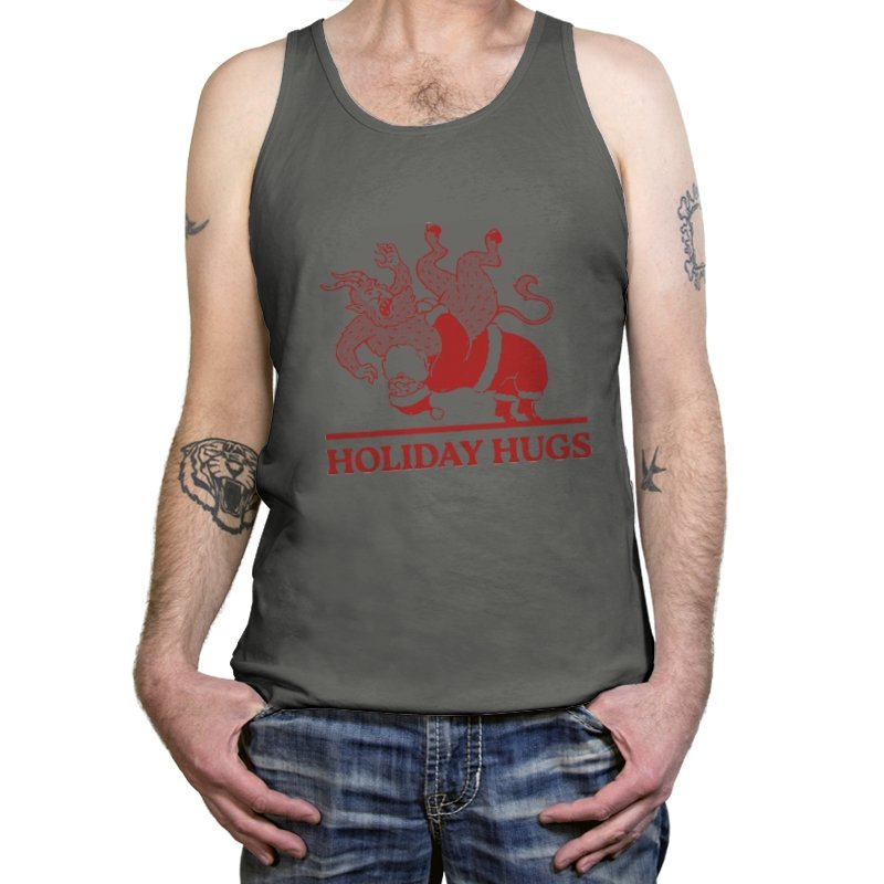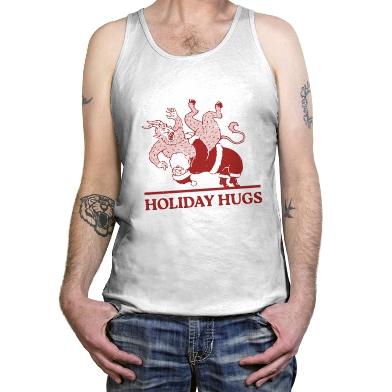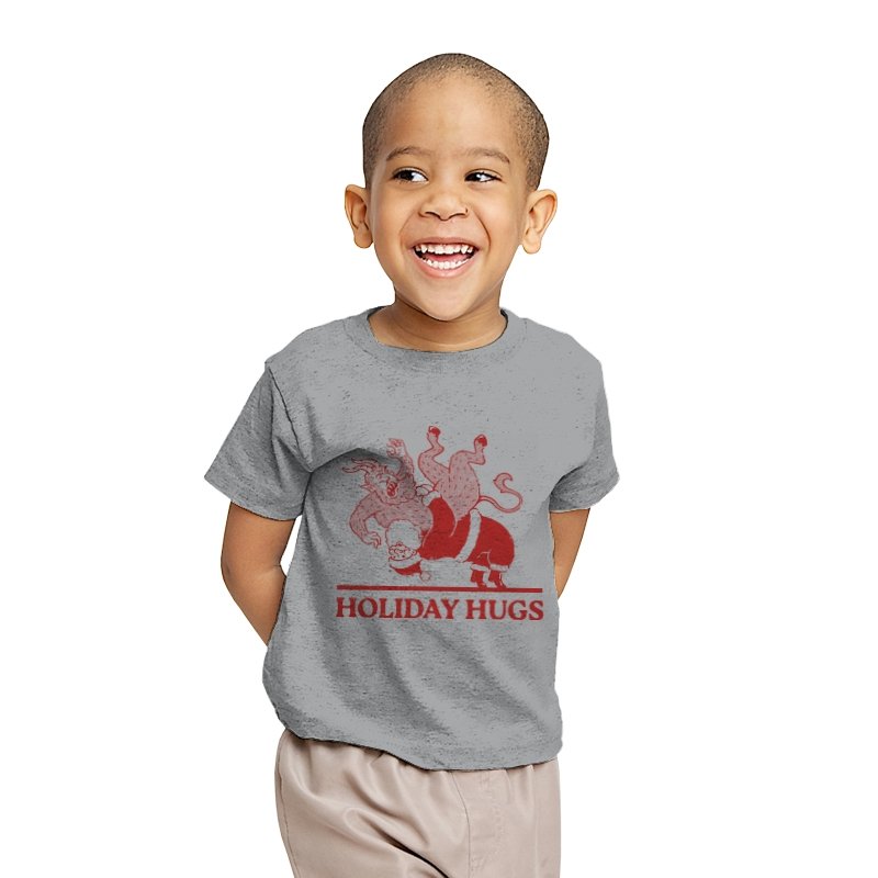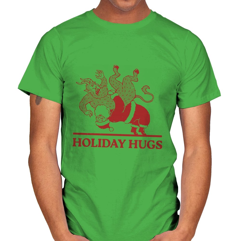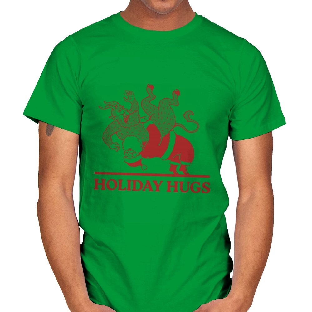 This design flips a familiar seasonal image into something far less gentle. A classic gift giver is mid-toss, flinging a snarling creature like an unruly package, rendered in a rough, vintage illustration style. The limited color palette and distressed lines make it feel like an old holiday card that never should have been printed. If you know the story behind the creature, the joke lands somewhere between menace and nostalgia.
