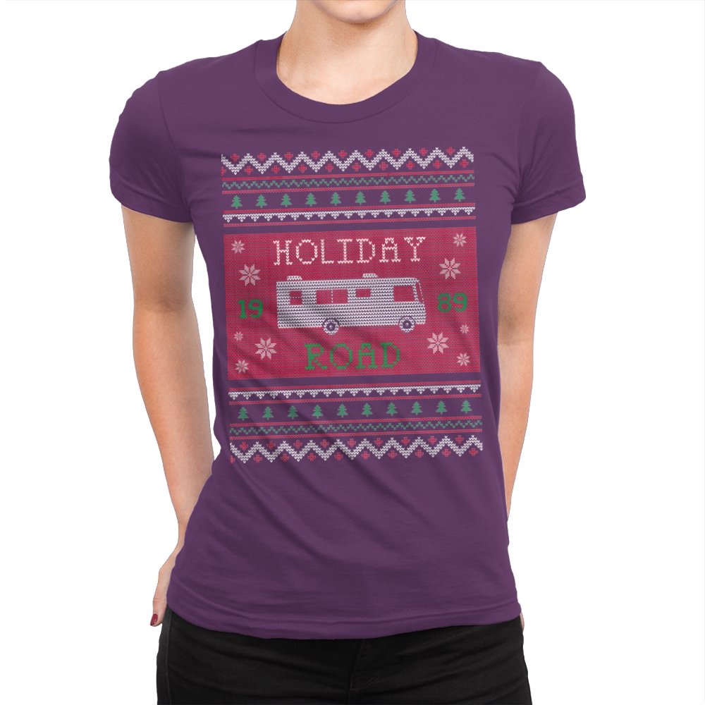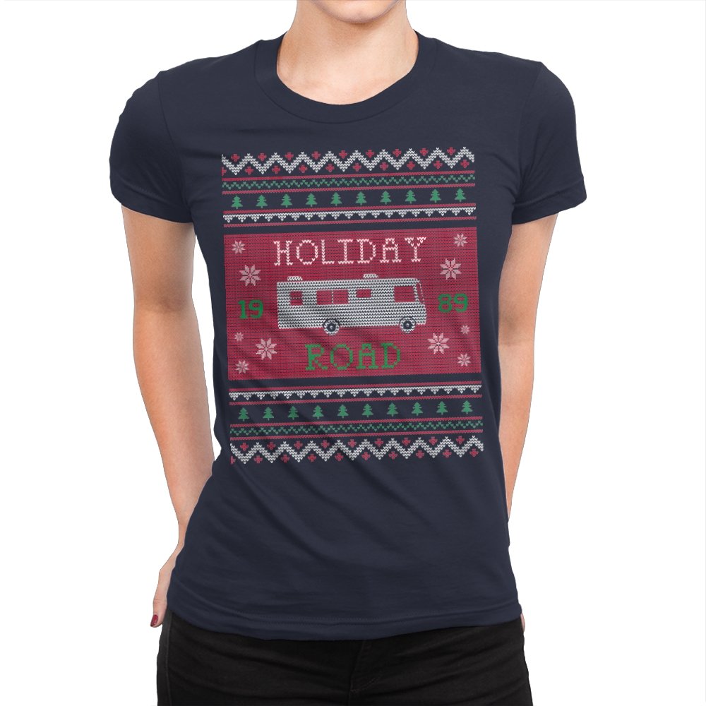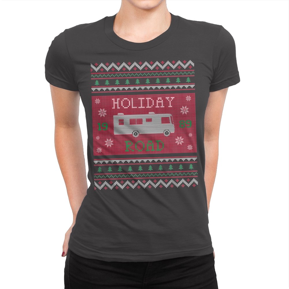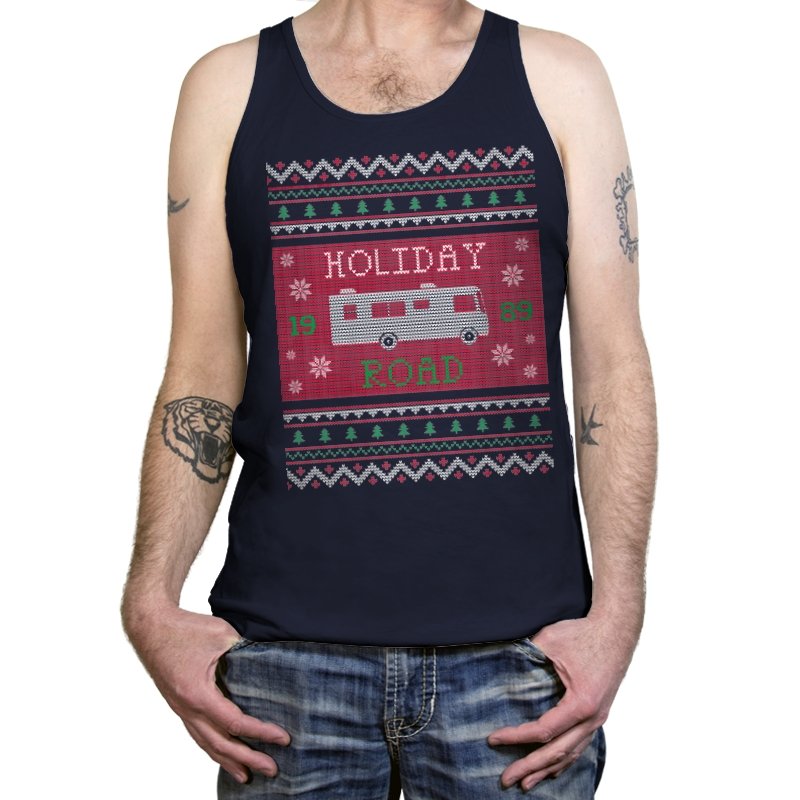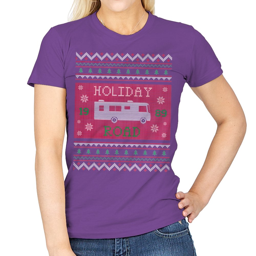 This design turns a classic family road trip into a knit-style holiday pattern. The blocky layout, winter icons, and repeating borders frame a boxy wagon cruising straight through festive chaos, with the year baked in for those who know. It looks like a sweater your relatives would question, then slowly understand. The humor lives in the format as much as the reference.