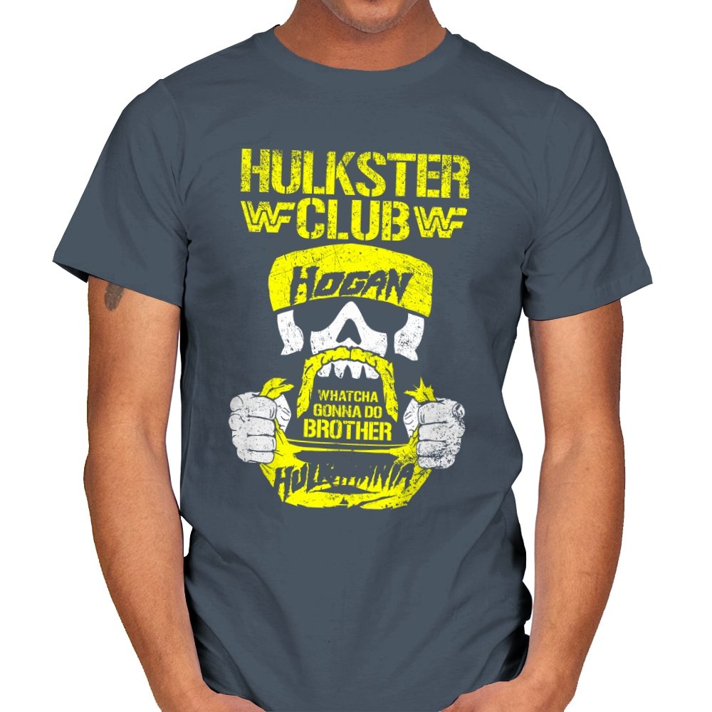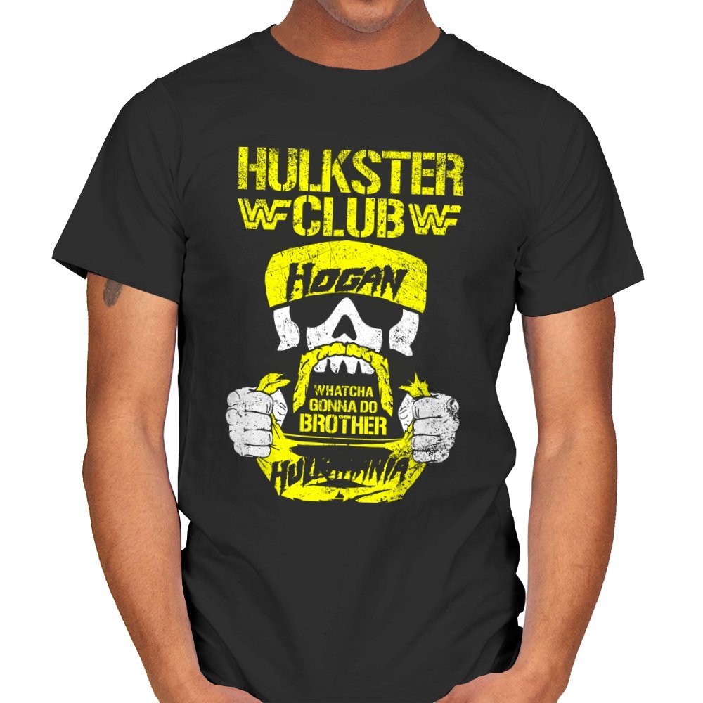 This bold design celebrates the iconic “HULKSTER CLUB” with a gritty, vintage look that pays homage to the wrestling legend himself. Featuring a skull wearing Hulk Hogan’s signature bandana, it captures the spirit of the 80s wrestling era. The phrase “Whatcha Gonna Do, Brother” is prominently displayed, bringing nostalgia for fans of Hulkamania and the golden age of wrestling. This design is perfect for those who appreciate both the power of wrestling and the raw energy of iconic figures like Hogan.