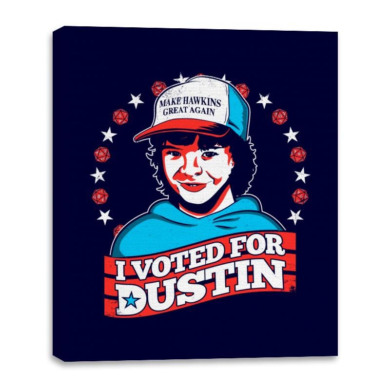 This design brings a touch of humor and nostalgia with Dustin’s iconic “Make Hawkins Great Again” cap and the bold statement, “I Voted for Dustin.” The playful image of Dustin, paired with his signature charm and confidence, makes this design a fun and quirky tribute to the character. It combines pop culture with political satire in a lighthearted way that fans of the show will appreciate.