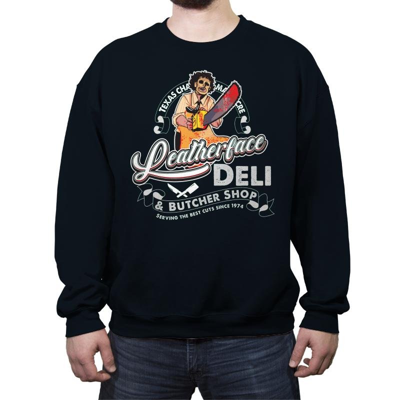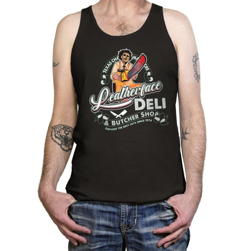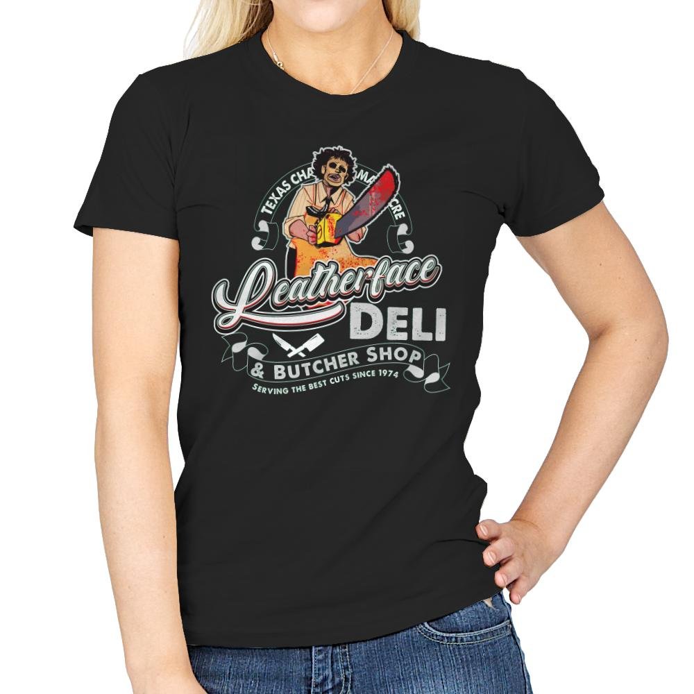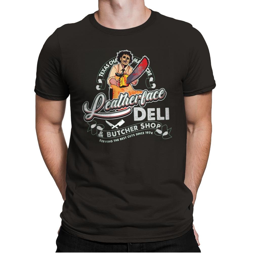 This design flips grindhouse horror into roadside Americana, dressing a chainsaw-wielding icon as a smiling small-town butcher. The layout mimics a vintage deli sign, complete with ribbons, knives, and an establishment that looks proudly local and deeply unhinged. It blends hand-painted shop signage with slasher-era attitude in a way that feels both welcoming and wrong. Fans instantly recognize the joke without it being spelled out.