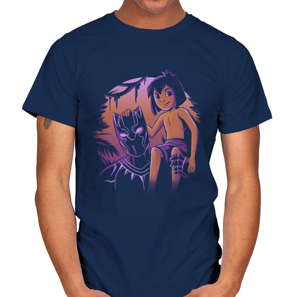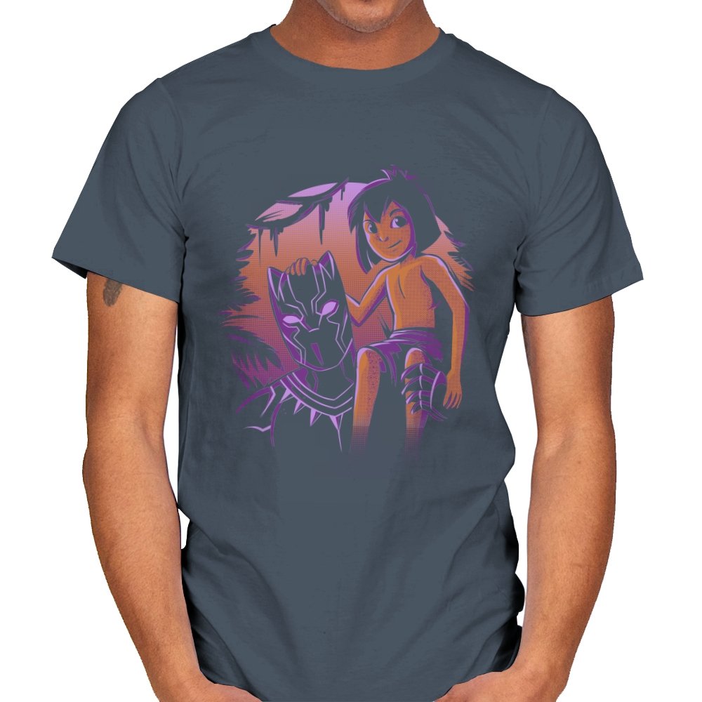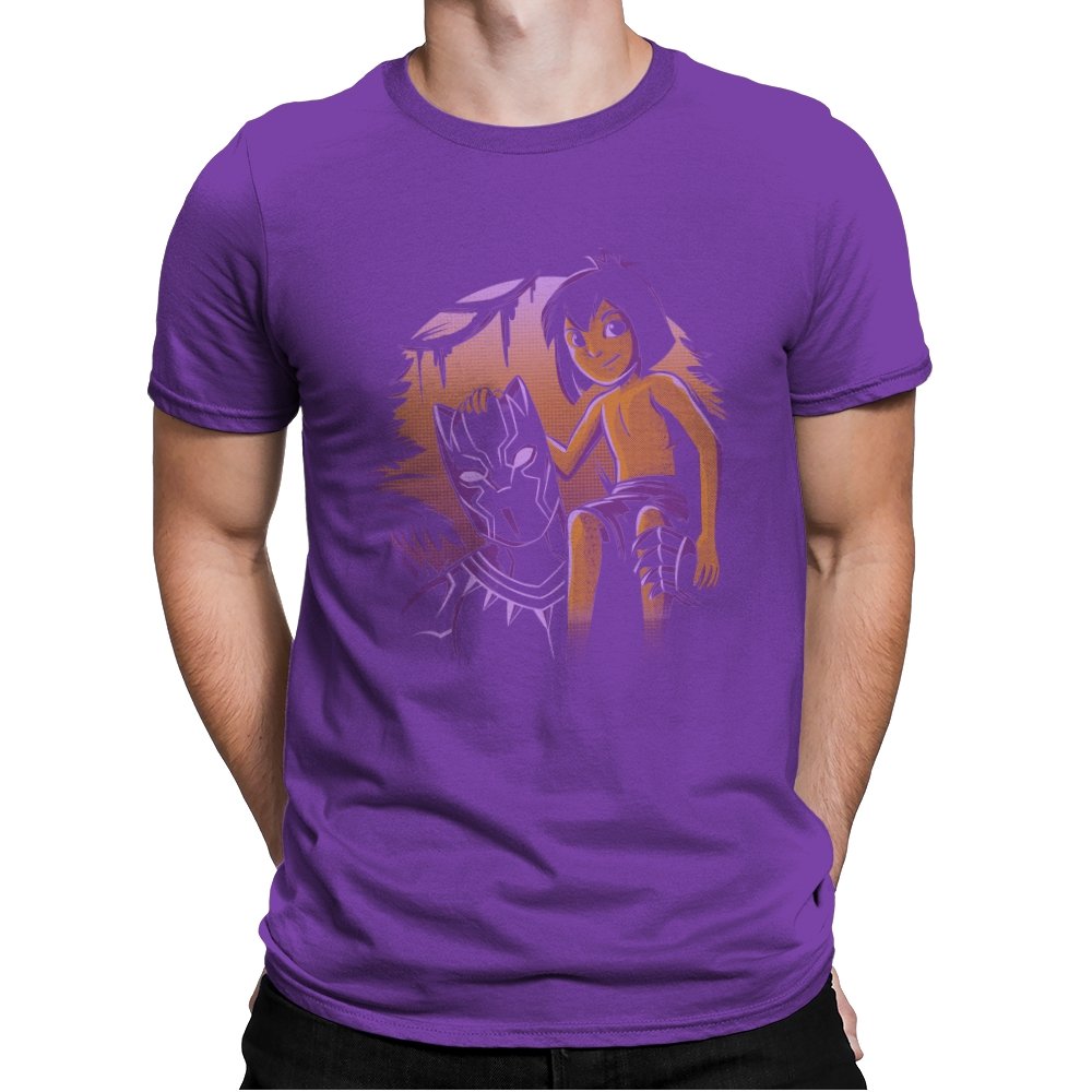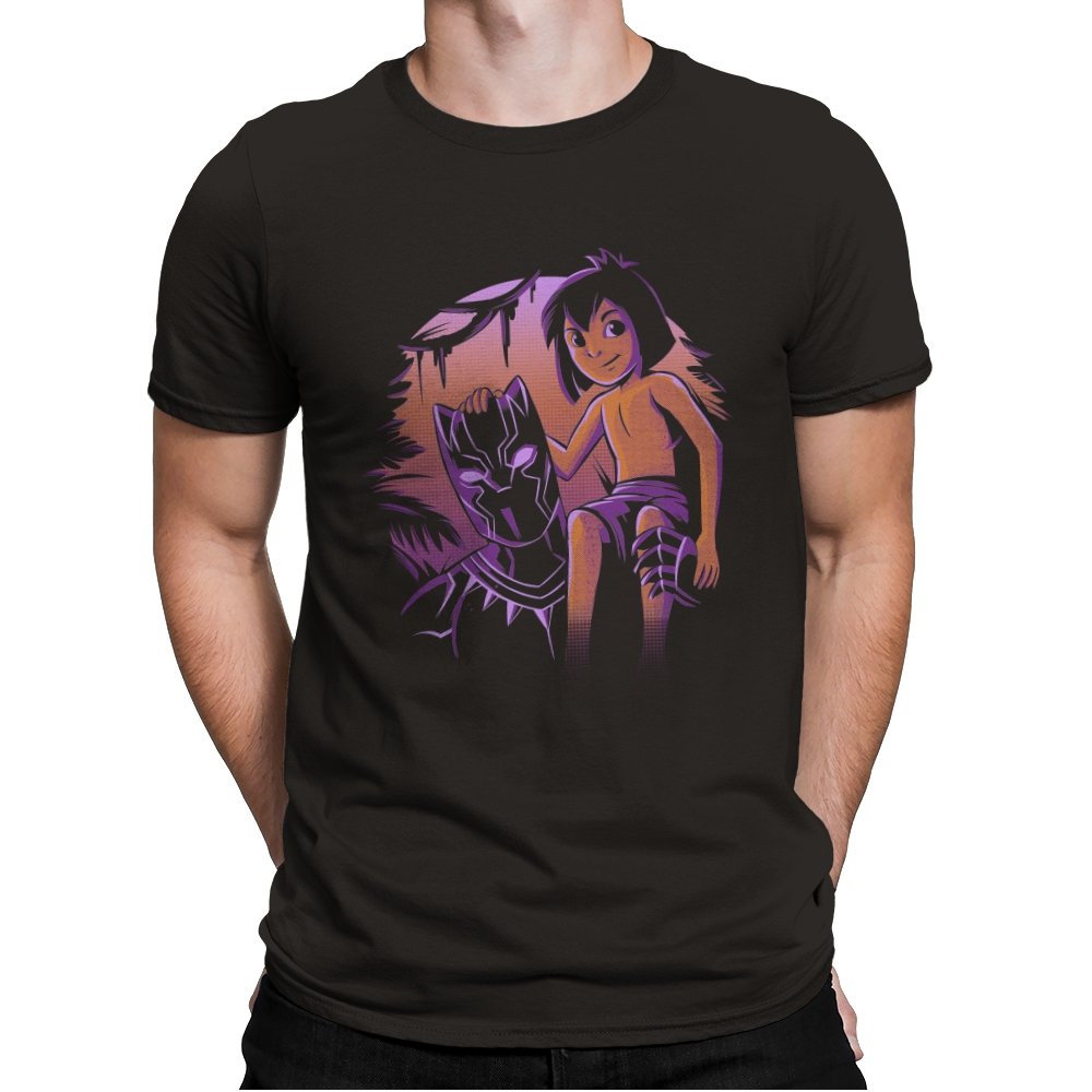 The artwork captures a quiet origin moment rather than a battle, showing a young jungle raised hero seated beside the mask that defines his future. The contrast between soft, warm skin tones and the sharp, angular panther helm sets the tone immediately. Purple and amber lighting gives the scene a mythic dusk feel, suggesting legacy before responsibility fully arrives. Fans recognize the reference as a respectful nod to growth, inheritance, and the space between boyhood and legend.