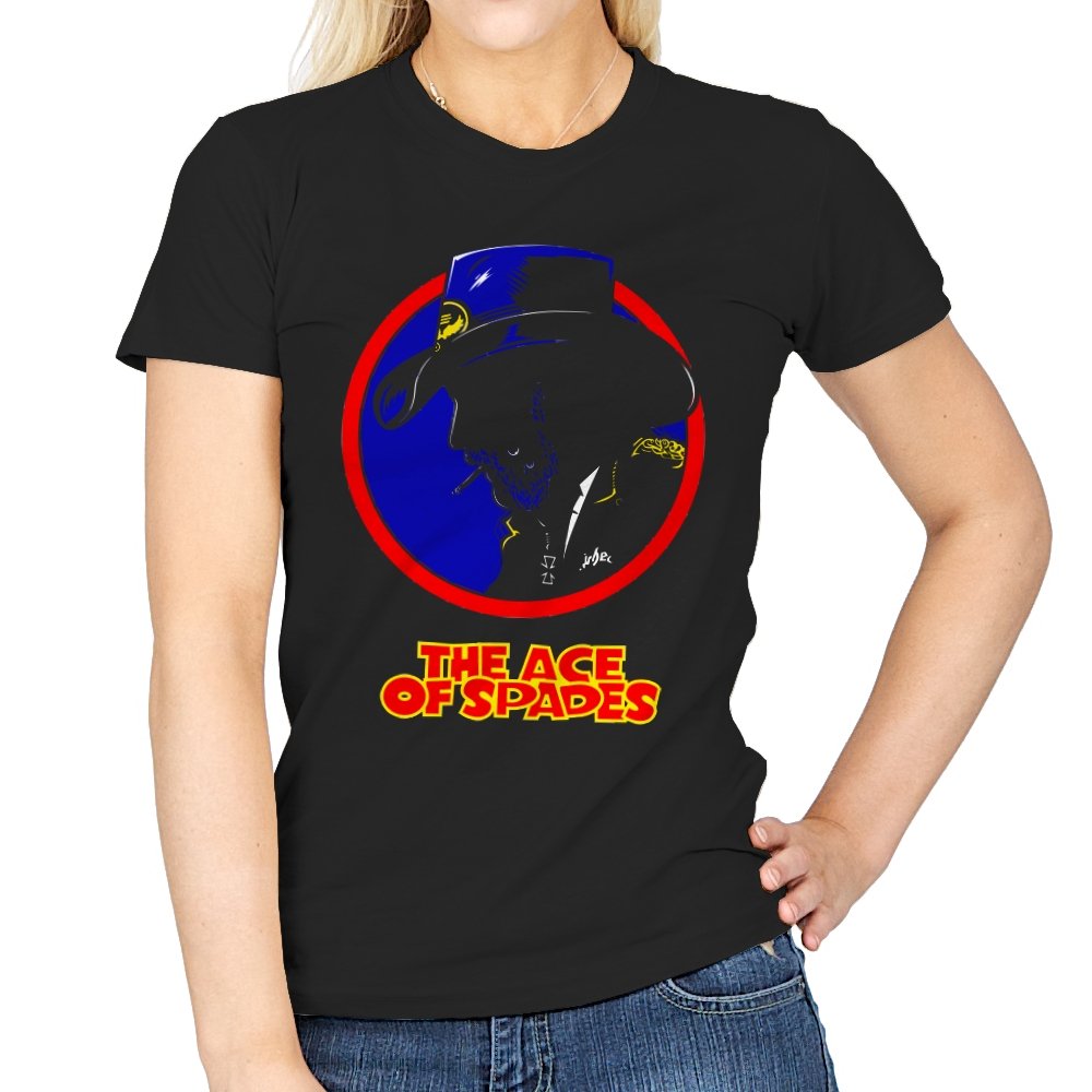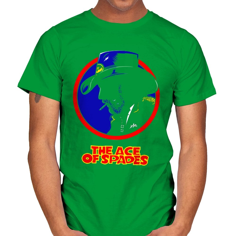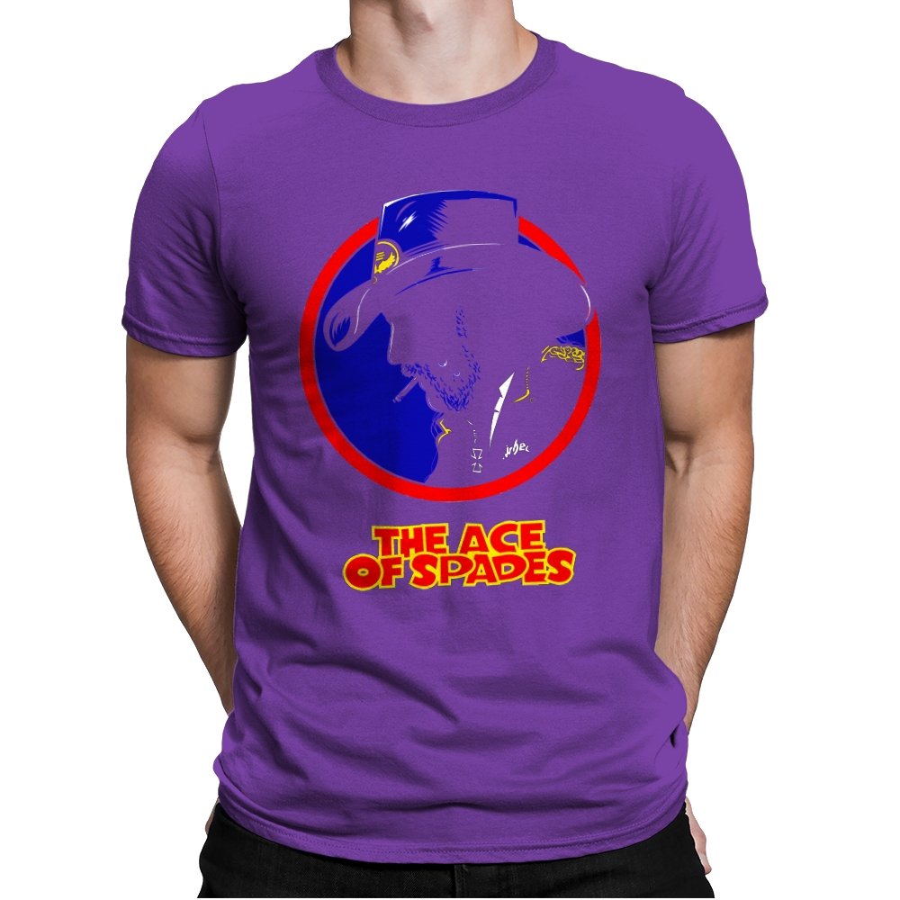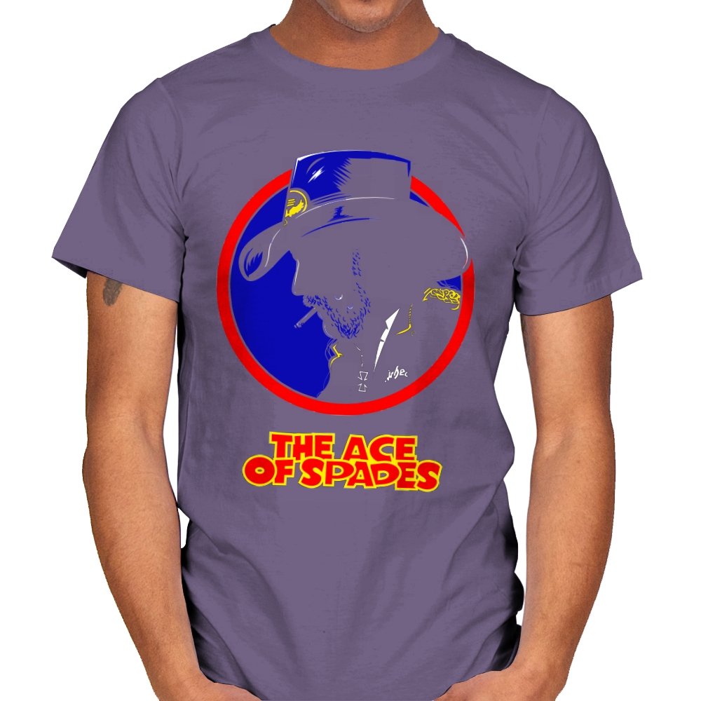 This striking design features a silhouette of a figure, inspired by a rock legend, set against a bold red and blue circle. The figure’s iconic cowboy hat and cigarette give it a classic, cool edge, while the words “THE ACE OF SPADES” pay homage to a timeless, powerful song. The sharp contrast and minimalistic styling make this piece both nostalgic and modern, perfect for fans of rock culture and bold, artistic design.