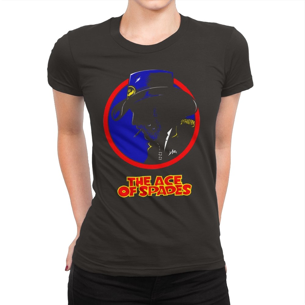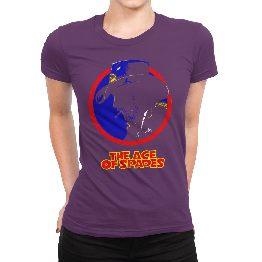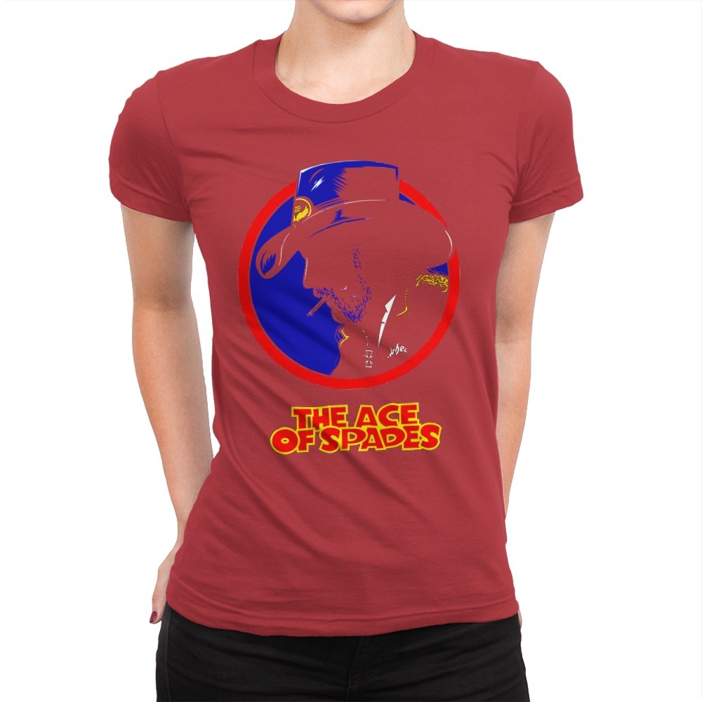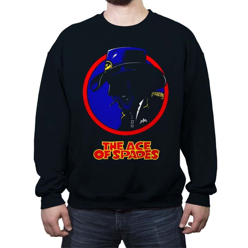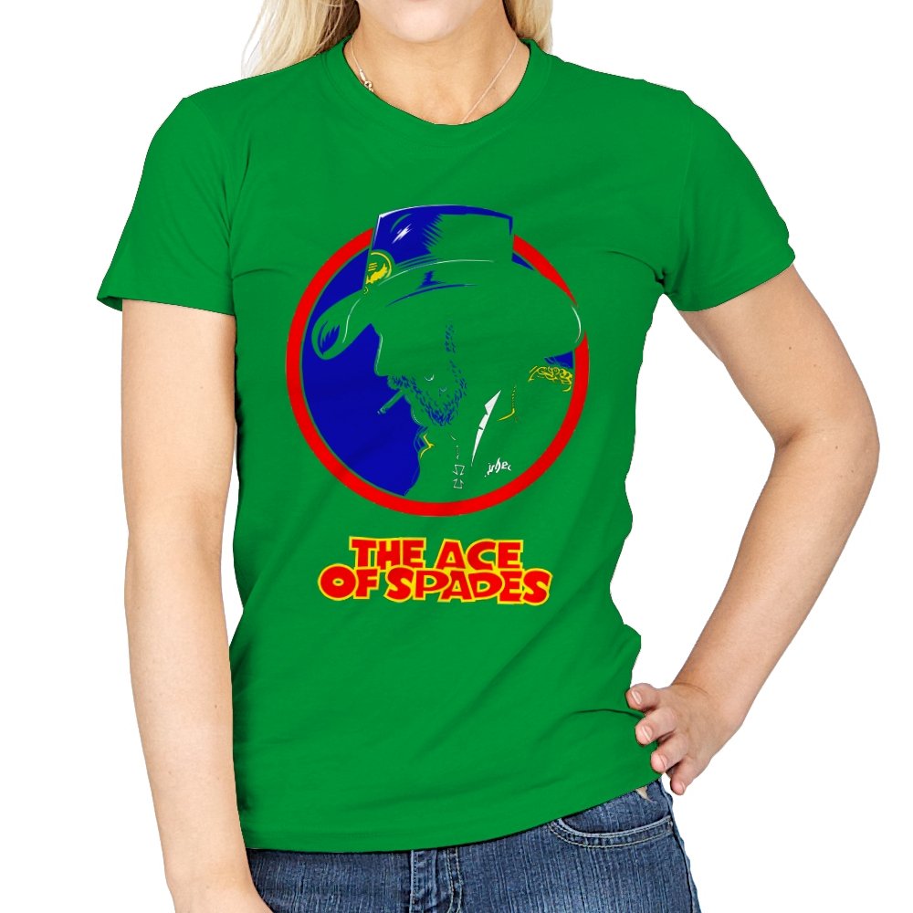 This striking design features a silhouette of a figure, inspired by a rock legend, set against a bold red and blue circle. The figure’s iconic cowboy hat and cigarette give it a classic, cool edge, while the words “THE ACE OF SPADES” pay homage to a timeless, powerful song. The sharp contrast and minimalistic styling make this piece both nostalgic and modern, perfect for fans of rock culture and bold, artistic design.
