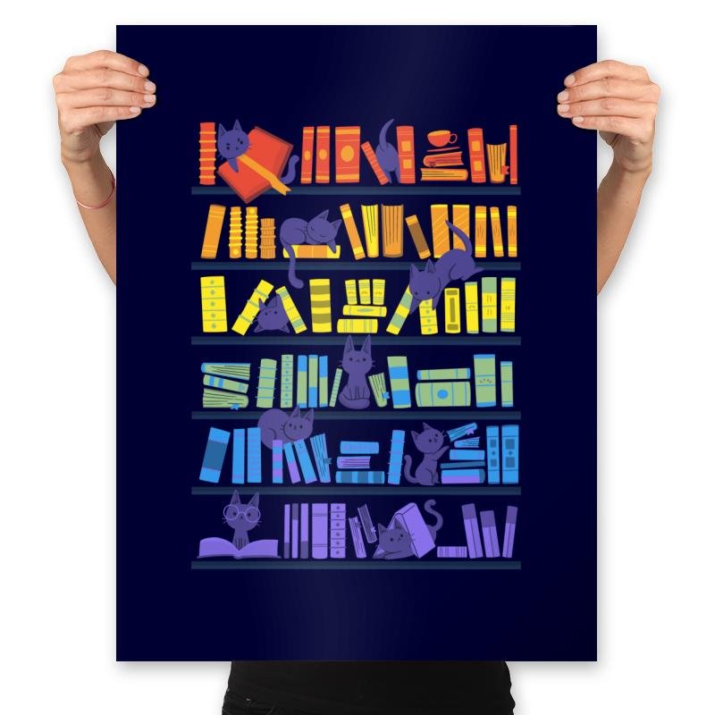 This design appeals to anyone who enjoys both literature and feline antics, blending them into a charming visual that’s both soothing and amusing. For those who appreciate the quiet joy of reading and the playful nature of cats, this piece captures the essence of a cozy library atmosphere with just the right amount of quirkiness.