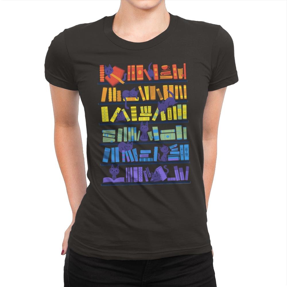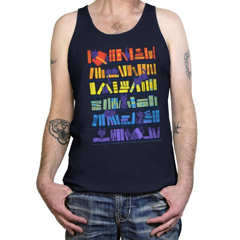 The Library Kittens design is a playful and clever take on the intersection of two beloved things: books and cats. A series of shelves, each filled with colorful books, is subtly interrupted by a group of curious kittens lounging and playing among the volumes. The vibrant colors of the books and the mischievous poses of the cats create a sense of fun and whimsy, perfect for any cat lover or book enthusiast.
