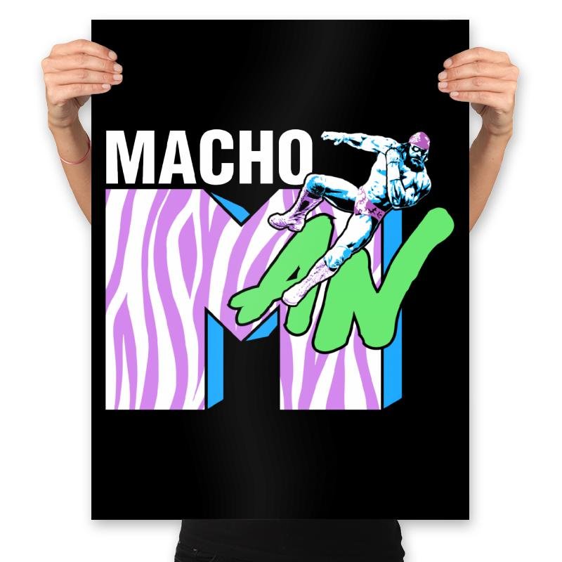 This design captures the loud, neon-soaked spirit of classic televised wrestling with a giant block “M” filled with zebra stripes and candy colors. A leaping figure cuts across the type, frozen mid-drop in a moment that feels both ridiculous and iconic. The contrast between white, purple, and green hits with that late-80s cable energy, when gimmicks and charisma mattered as much as the moves. Anyone who ever flipped through weekend channels looking for spectacle will read it instantly.