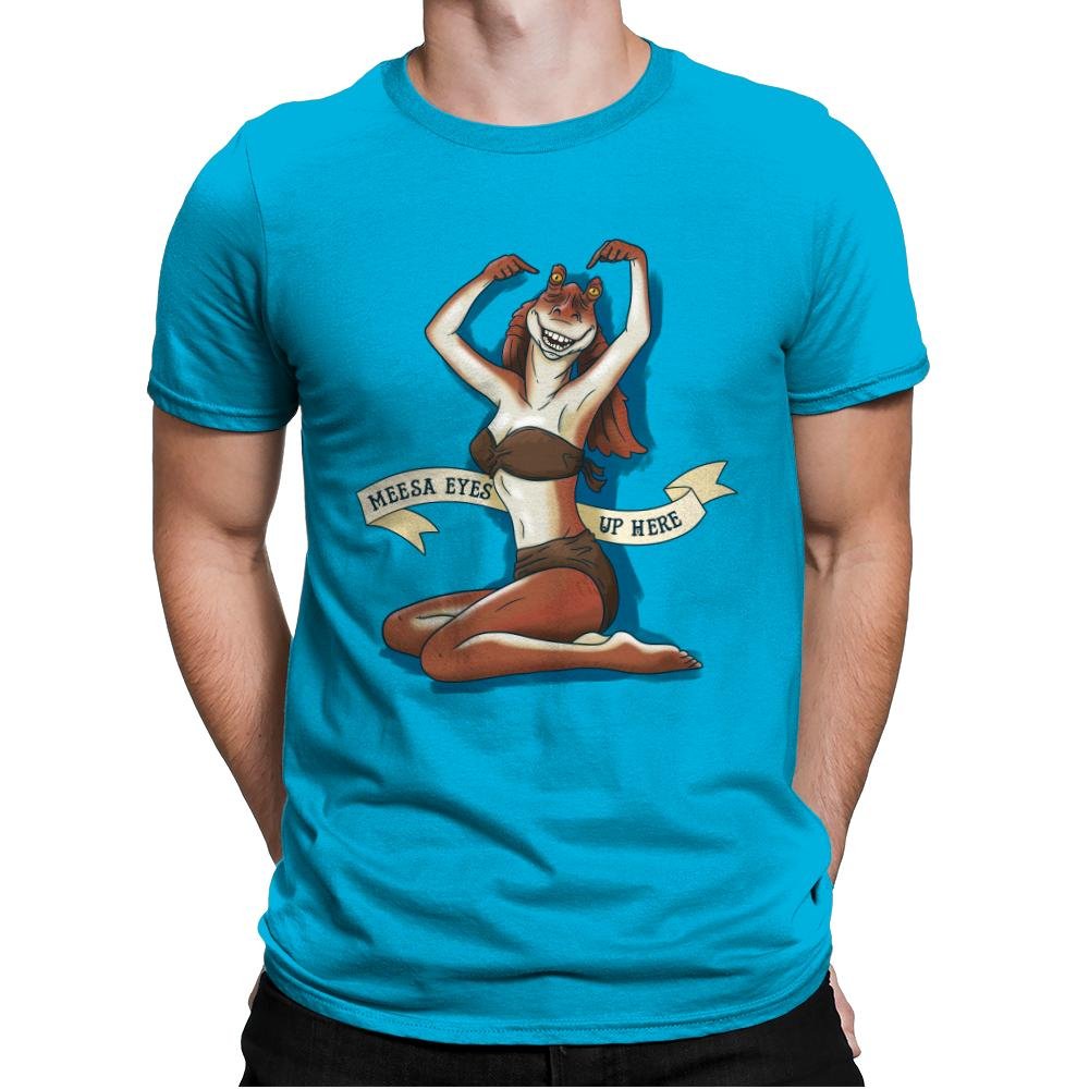 Meesa Eyes Up Here is for people who enjoy bold mashups and aren’t afraid of humor that rides the edge of ridiculous. It signals comfort with pop culture deep cuts and a taste for designs that don’t apologize for being weird. The vibe is cheeky, ironic, and fully aware of itself.