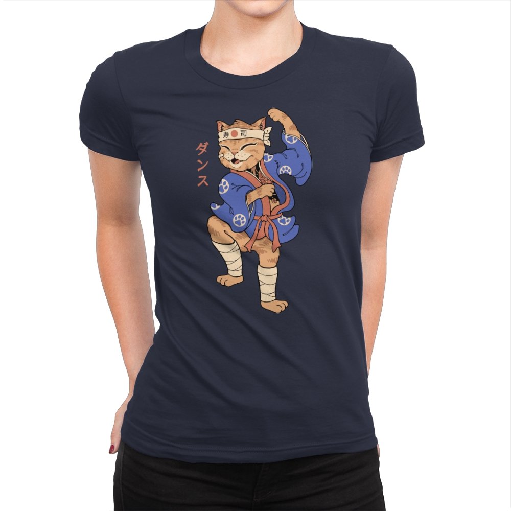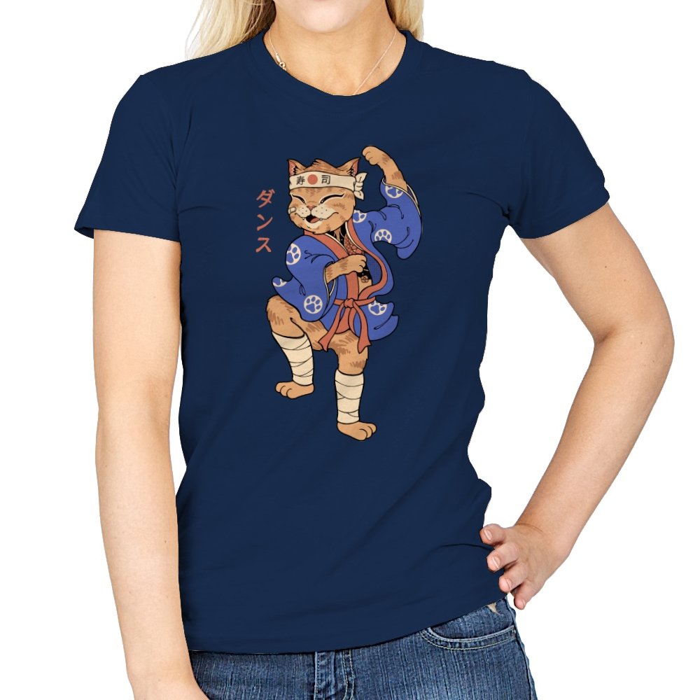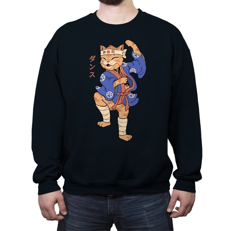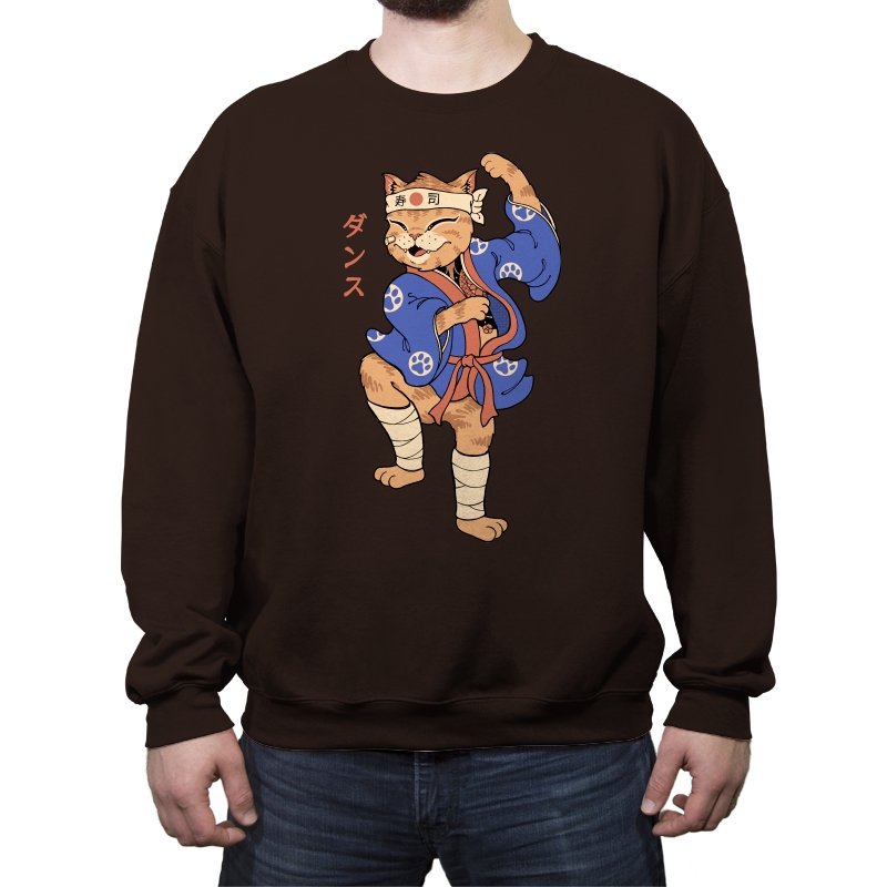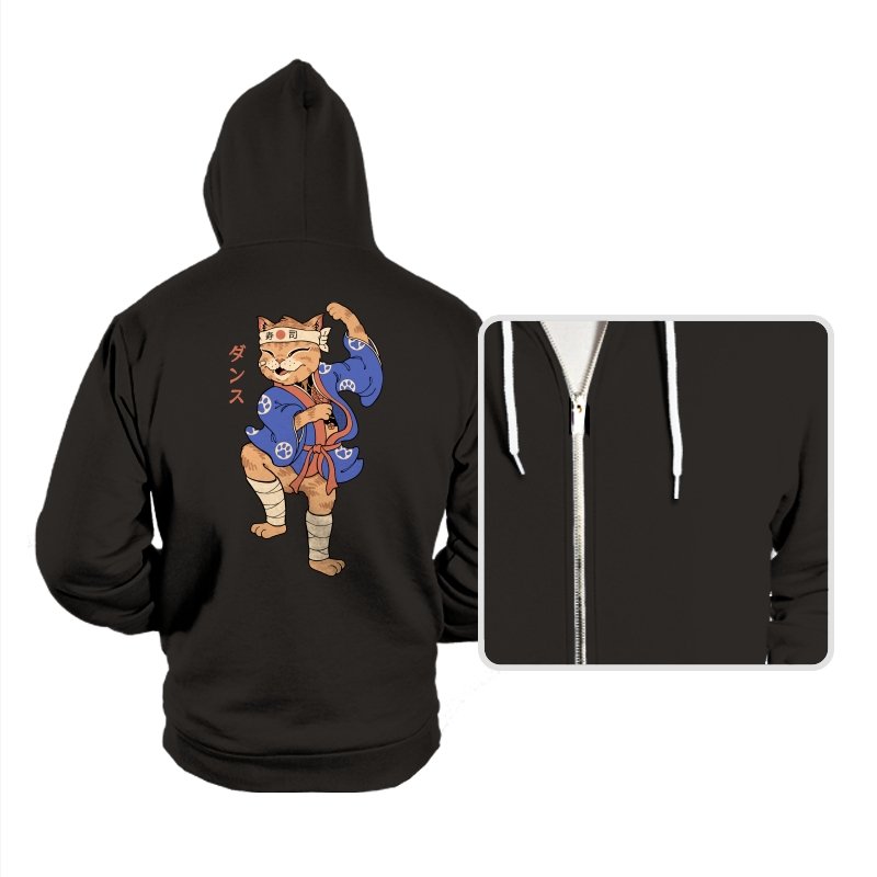 This design captures a confident cat frozen mid-pose, dressed in traditional attire with a playful martial arts twist. The stance is exaggerated and proud, the expression relaxed but focused, like a routine practiced purely for joy. Details like the headband, wrapped legs, and patterned robe ground the character in a familiar cultural aesthetic without overexplaining it. It feels like a moment pulled from an animated side quest you remember more clearly than the main story.