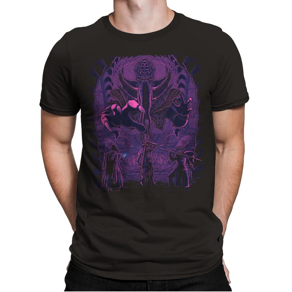 This design drops you into a cavernous throne room where a towering psionic figure presides over a ritual already in motion. The purple-heavy palette, layered textures, and symmetrical framing give it the feel of a forbidden mural pulled from a campaign notebook. Tentacled forms and distant silhouettes reinforce the imbalance of power, making the scene feel inevitable rather than explosive. It assumes you already know how badly this encounter can end.