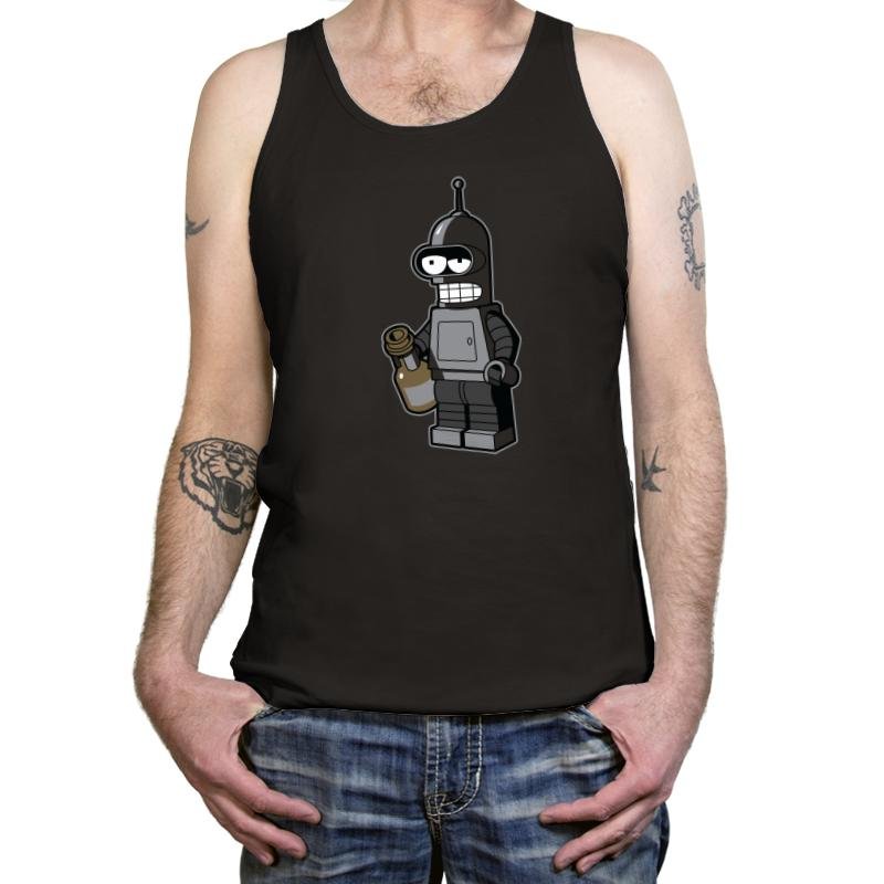 This design reimagines a famously sarcastic robot as a brick-built figure, blending blocky toy aesthetics with deadpan attitude. The simplified shapes, rigid stance, and half-lidded expression sell the joke instantly, especially with the small bottle detail adding character without explanation. Muted tones and clean outlines give it the feel of a collectible figure frozen mid-misadventure. Fans who get the reference will appreciate how cleanly the personality carries through the minimalist style.