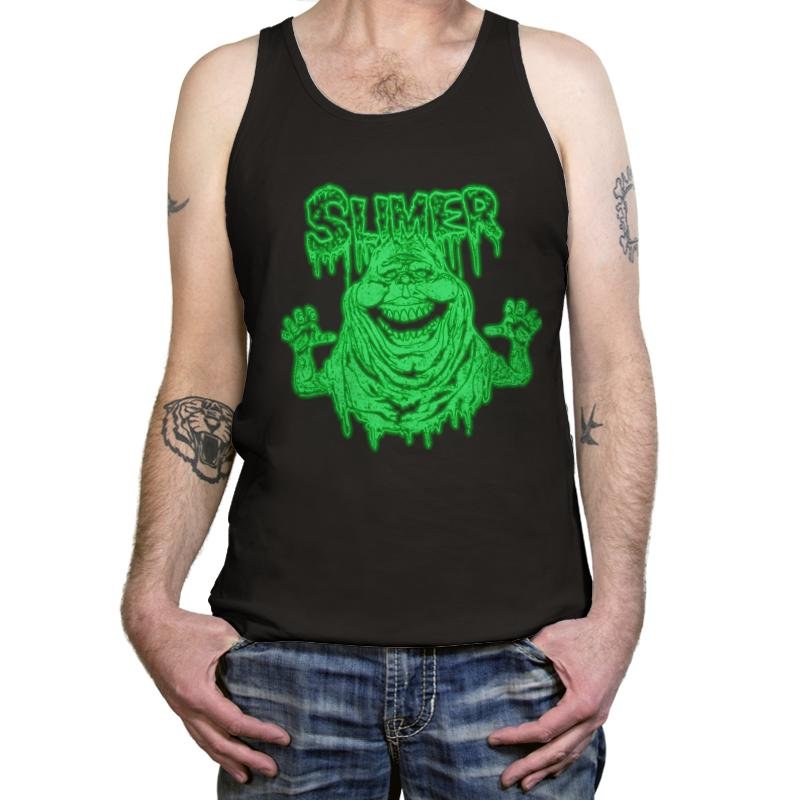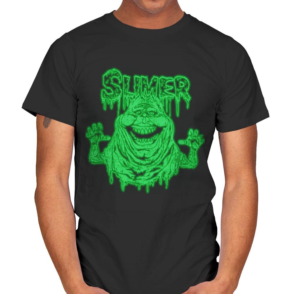 This design leans into a familiar green ghost, but twists it into something grosser and more unhinged. The slime drips more heavily, the grin feels wrong, and the raised hands look less friendly than you remember. It reads like a bootleg memory pulled from late-night TV and warped by bad decisions. Fans who grew up with the reference will spot the joke instantly.